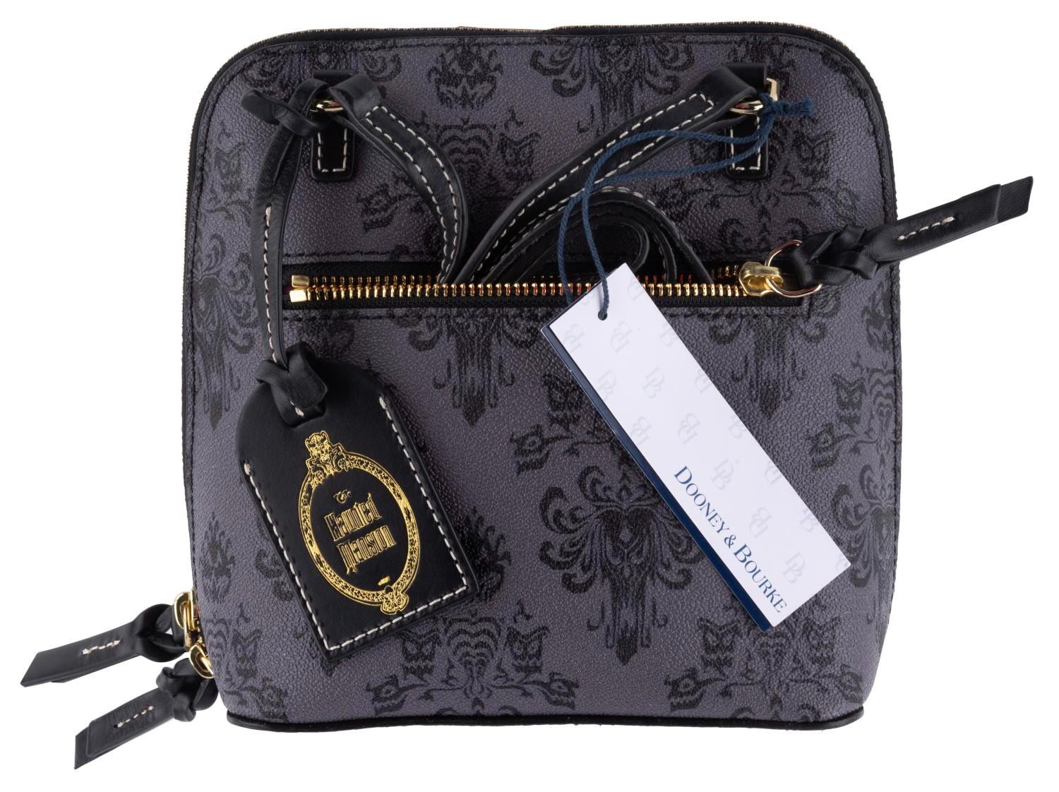 (Dooney & Bourke, 2018) A designer crossbody bag by Dooney & Bourke featuring a wallpaper pattern from The Haunted Mansion. Measuring 8” x 4” x 8.5” tall with a 26” strap, the bag maintains its original tags and is in fine condition.