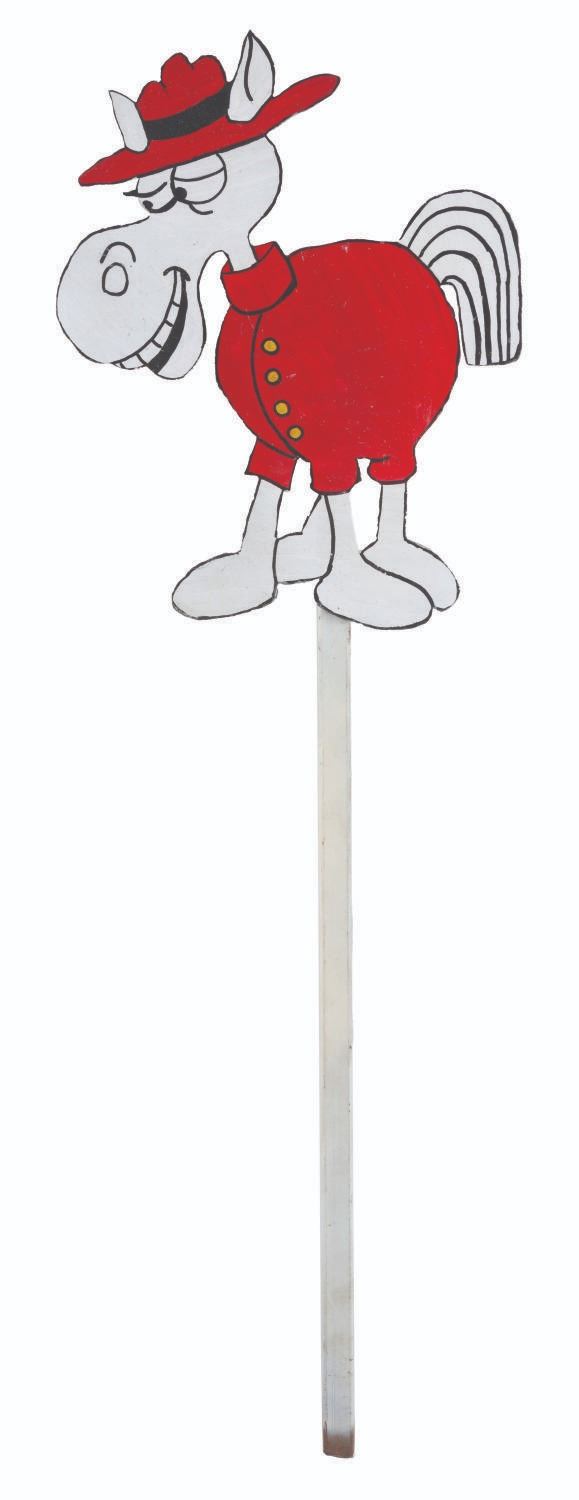 (Ward, 1999) A hand-made “Dudley Do-Right” Horse lawn decoration originally sold at the Dudley Do-Right Emporium. Measuring 28.25” x 9” the steel decoration is in very good condition with light scratches.