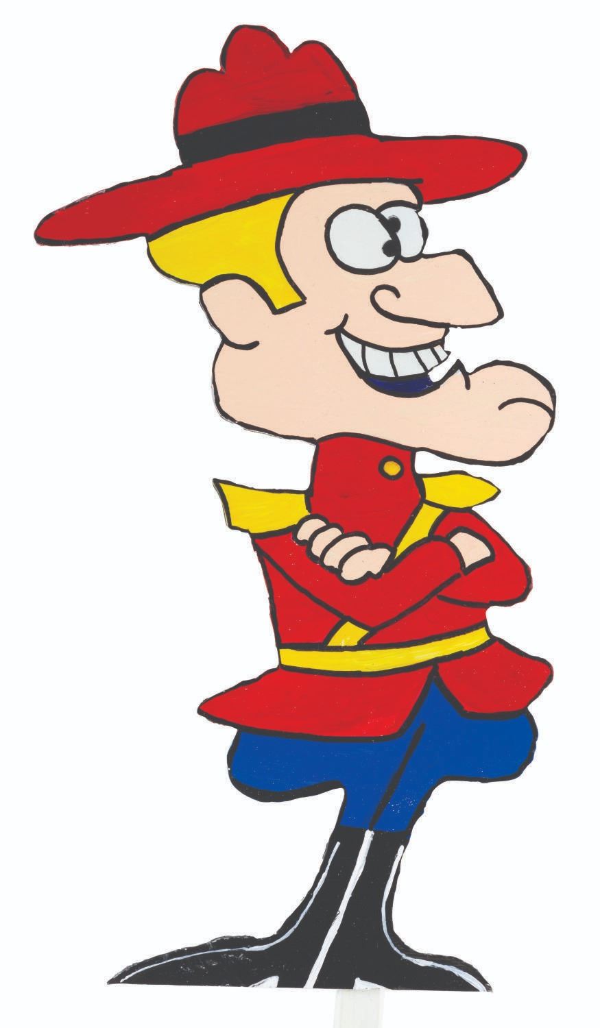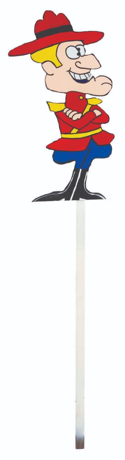 (Ward, 1999) A hand-made Dudley Do-Right lawn decoration sold at the Dudley Do-Right Emporium. Measuring 29.75” x 6.5” the steel decoration is in very good condition with light scratches.