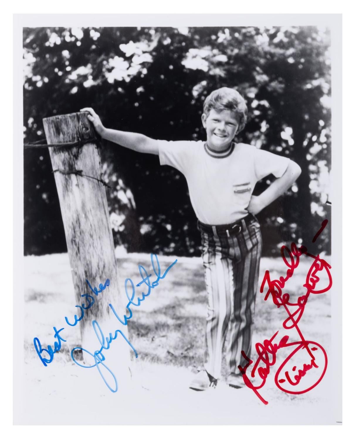 (CBS, 1966) A publicity photo from the sitcom "Family Affair," signed by stars Johnny Whitaker (Jody) and Kathy Garver (Cissy). Measuring 8" x 10", the photo is in fine condition.