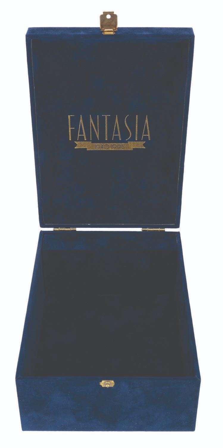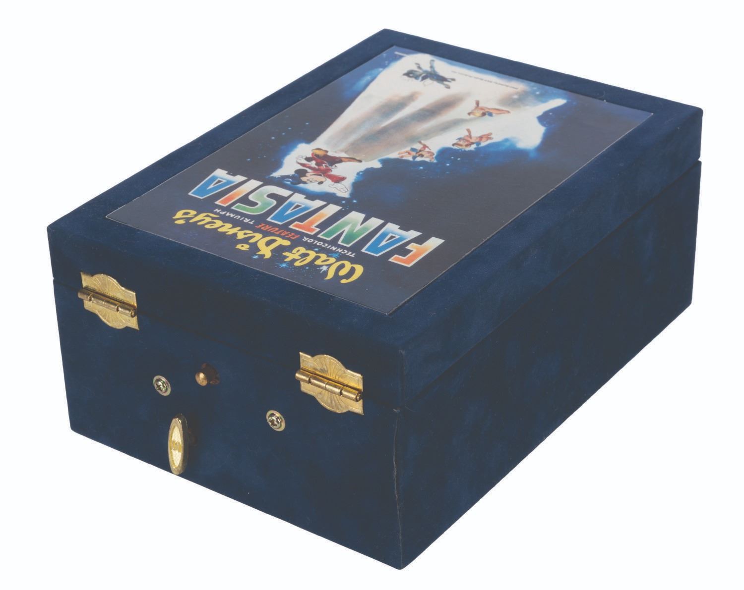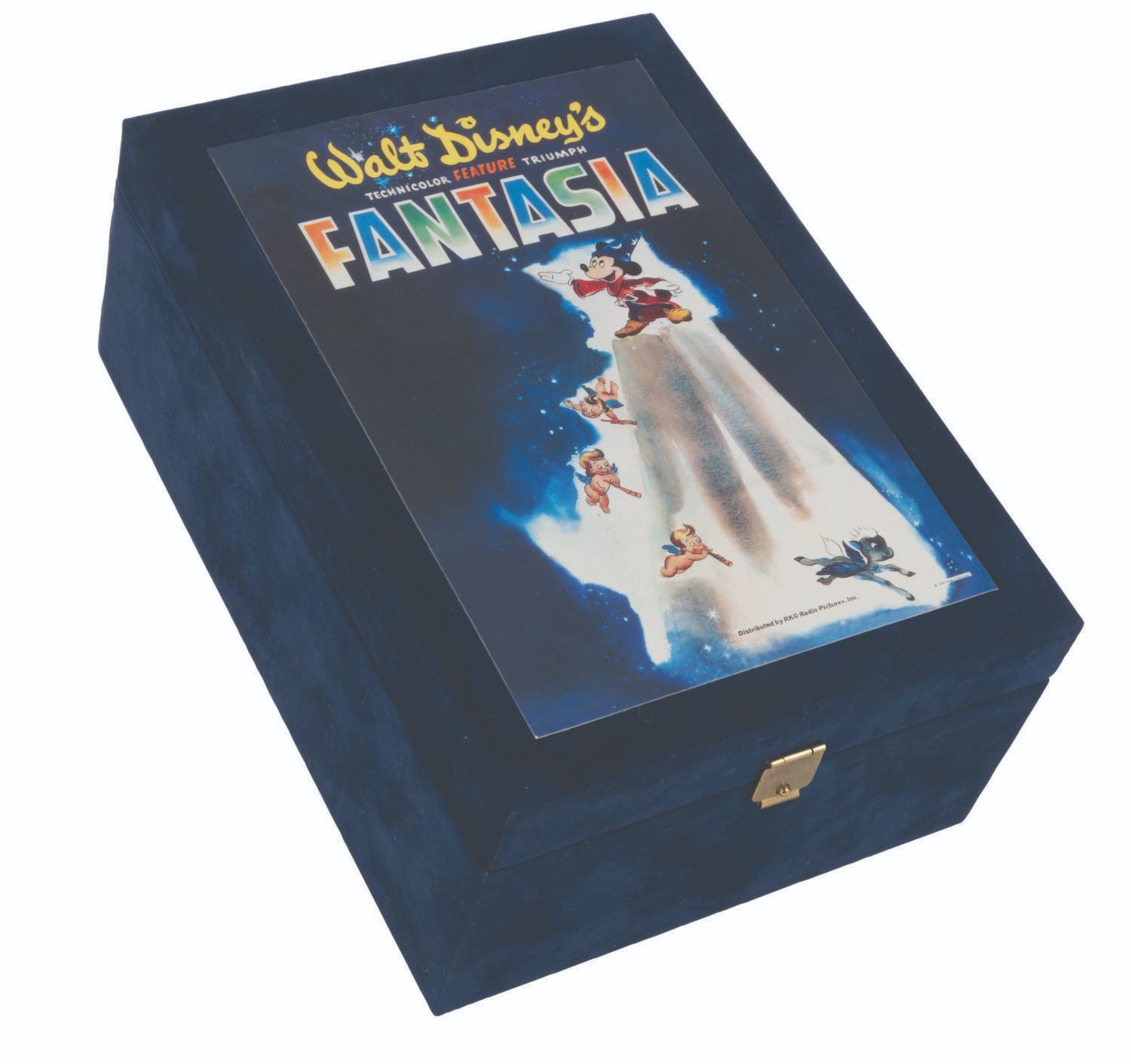 (Disney, 1995) A "Fantasia" music box commemorating the film's 55th anniversary. The music box, which plays "The Sorcerer's Apprentice" when wound, worked when tested. Measuring 5.75" x 3.5" x 8", the music box is in very good condition with scratches and light wear.