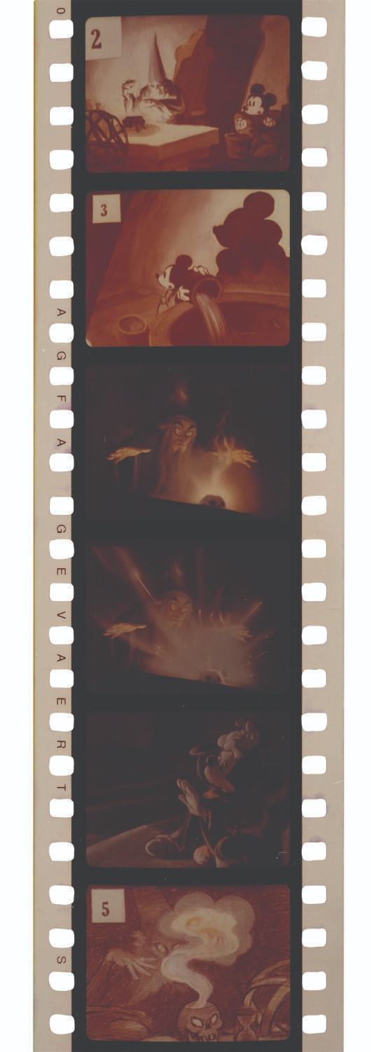 (Disney, 1940) An extremely rare Leica reel for the Sorcerer’s Apprentice segment of "Fantasia.” The reel features sequential story concept panels of the entire sequence, which were projected in time to the music to determine each shot’s length during production. This print of the film was made in the 1960s or 70s for reference, and is in very good condition with some color fading from age.
