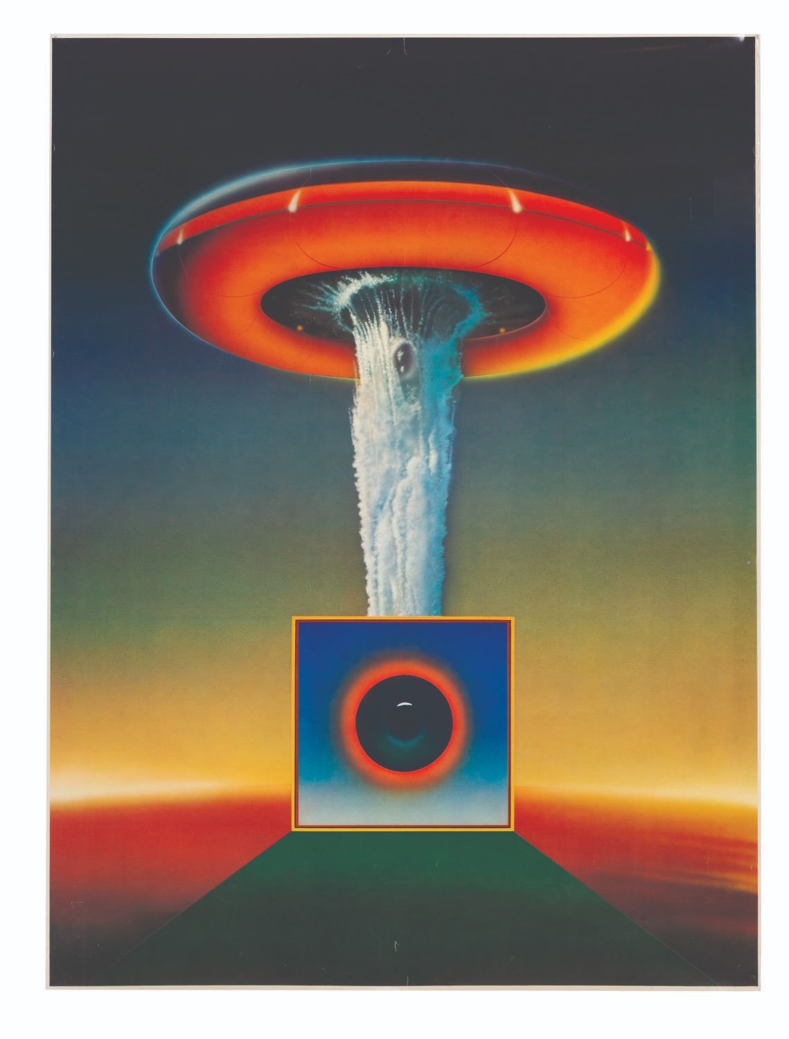 (1977) A poster of the artwork used for Dean A. Berko and Christopher Padilla’s "Fantastic Animation Festival " one-sheet. The package film, narrated by Paul Frees, featured 16 animated segments and included music from Cat Stevens and Pink Floyd, and a claymation film by Will Vinton. Measuring 23.75 " x 31.5 ", the poster is in good condition with edge wear, creasing, discoloration and spots to the reverse.