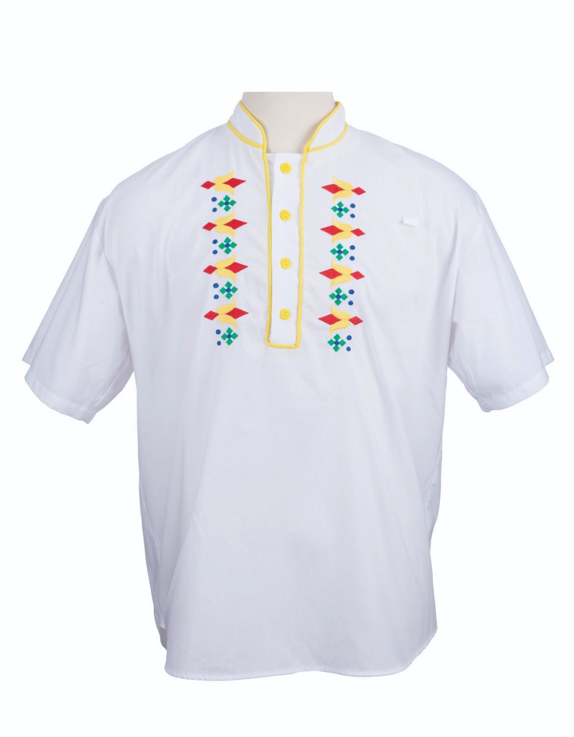 (Walt Disney World, 2000s) A Fantasyland Cast Member uniform shirt (size men's large) featuring a stitched floral pattern. The shirt maintains its Walt Disney World identification barcode label. Labeled a size L, the shirt is in very good condition with light wear.