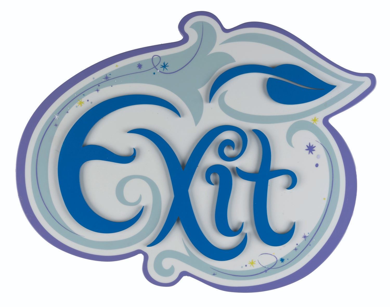 (Disneyland, 2000s) An Exit sign from Fantasyland, cast in resin with hand-painted embellishments. Measuring 15" x 0.25" x 12", the sign displays in very good, Park-used condition with typical wear and a light paint chip to the letter "E."