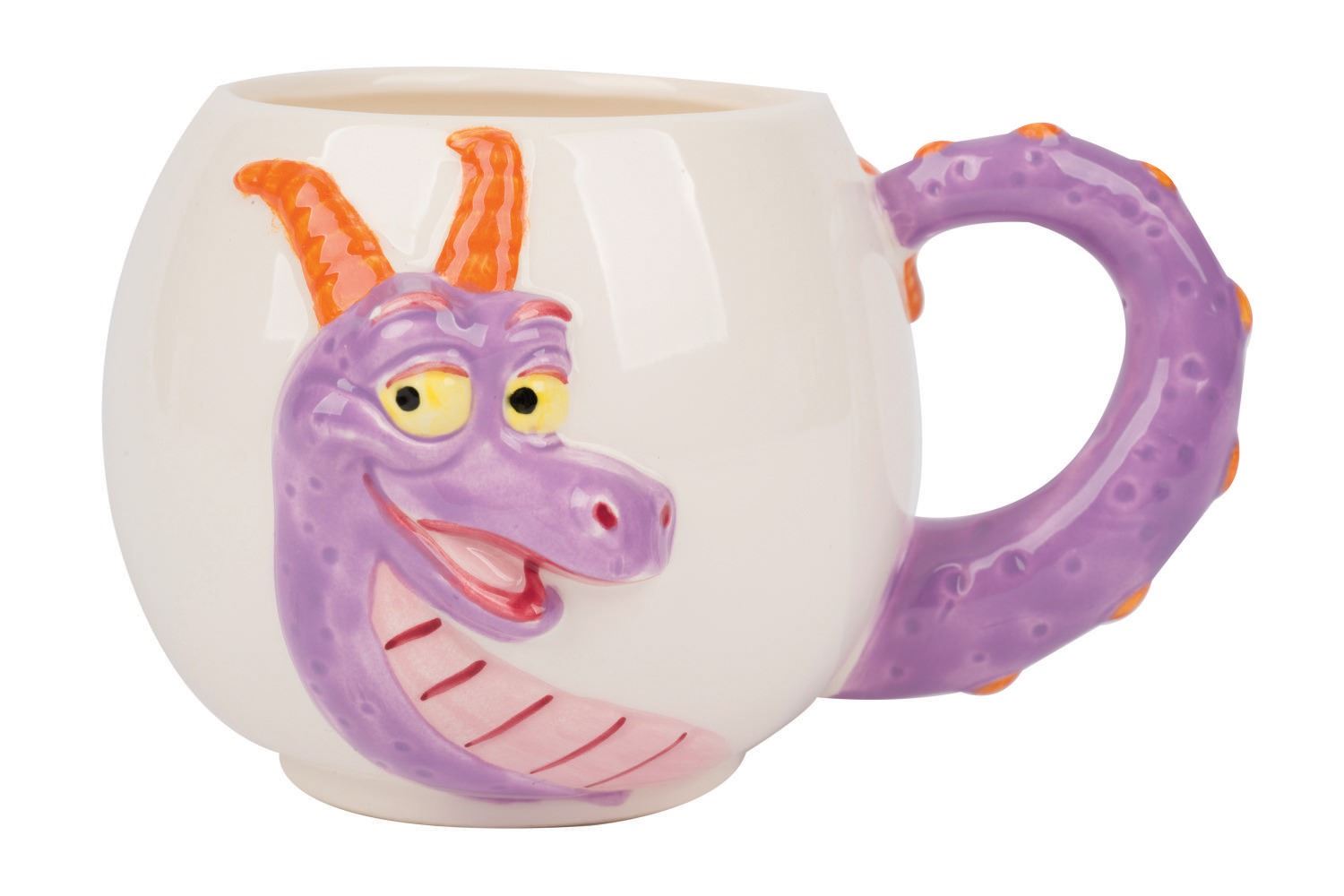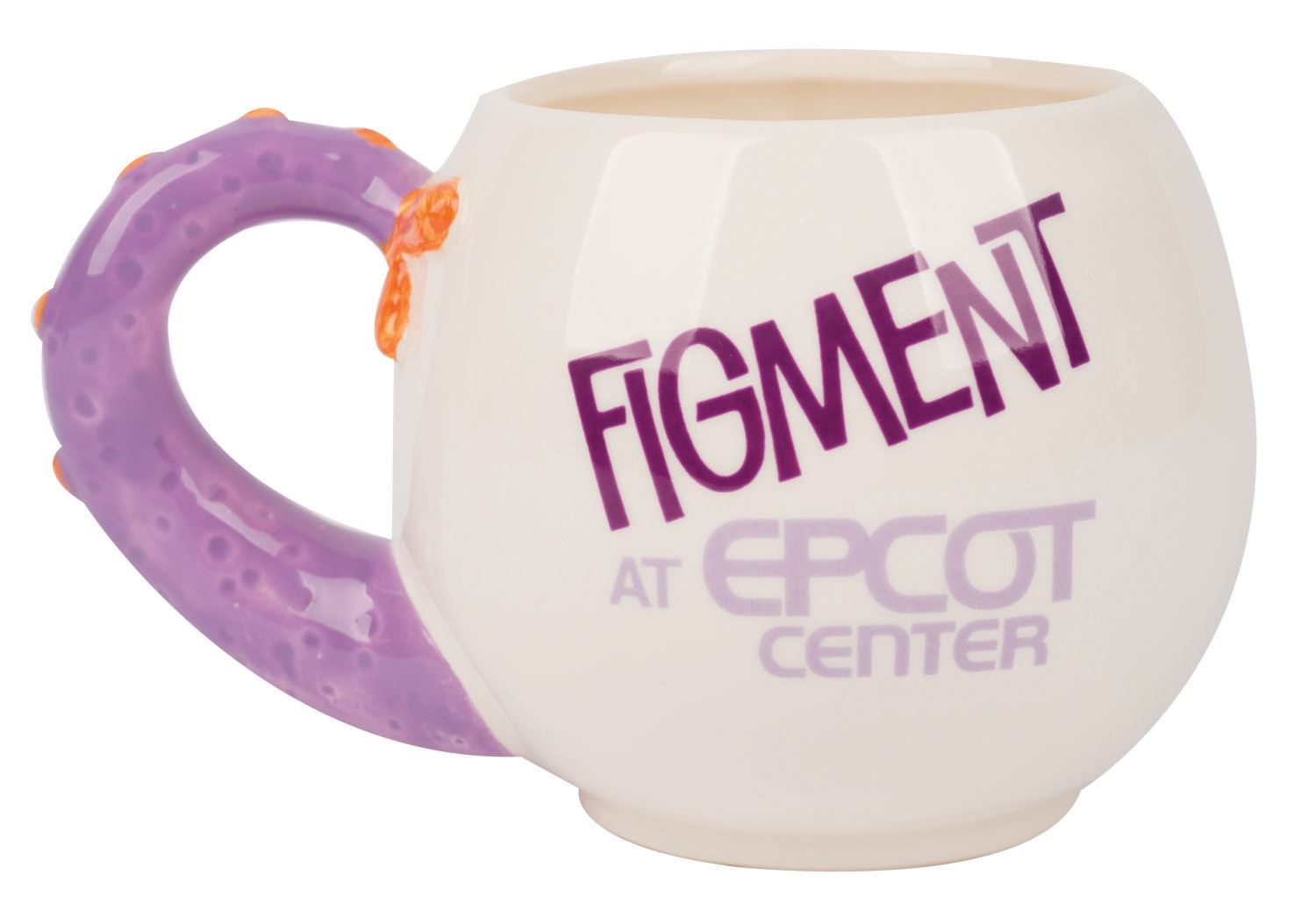 (EPCOT, 1982) A vintage 1980s "Figment at EPCOT Center" souvenir mug from Journey Into Imagination. Measuring 3.5" tall and 5.5" at its widest diameter, the mug is in very good condition with a small chip near the eyebrow.