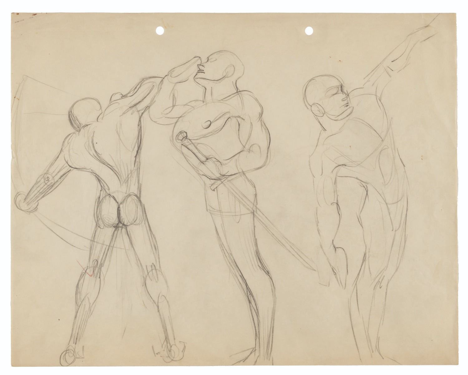 human characters. Measuring 9.5” x 12”, the graphite drawing is in good condition with creases throughout, edge wear, and discoloration from age.