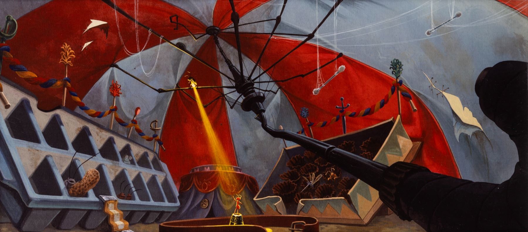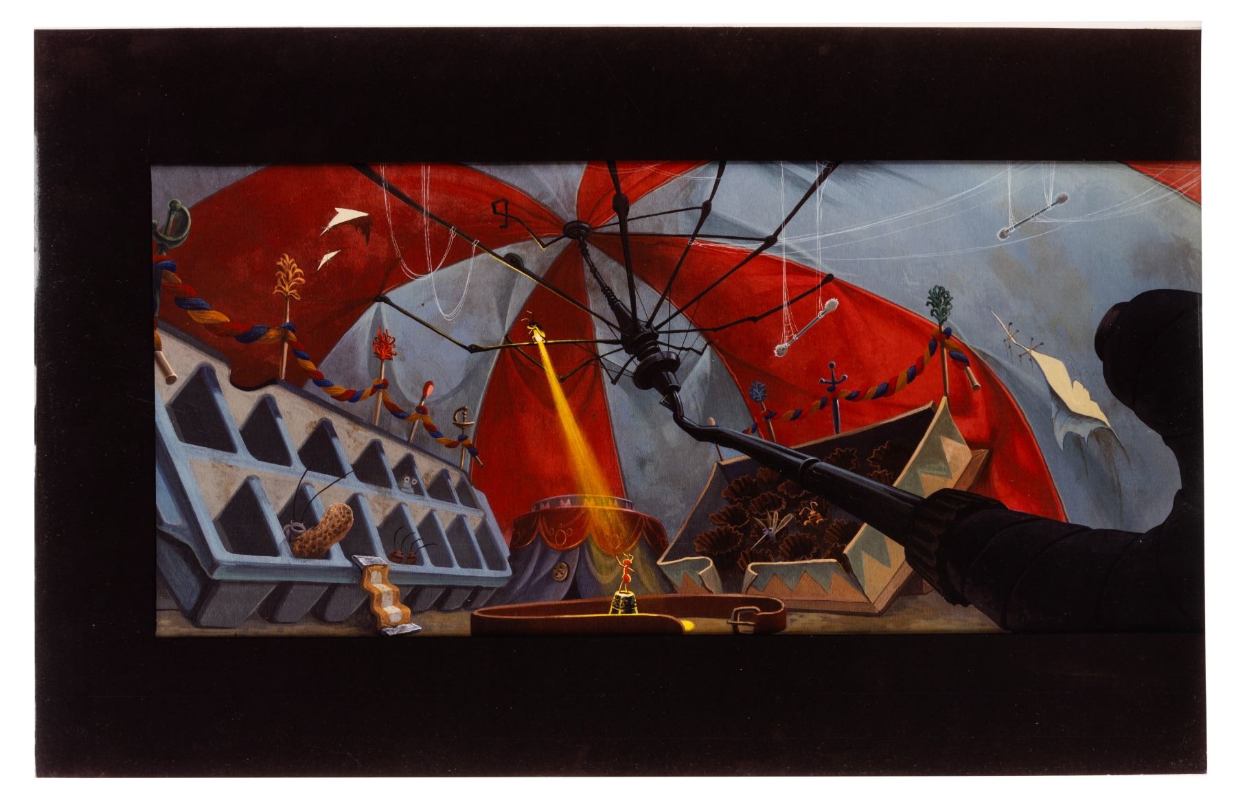 (Disney, 1990s) An original print of digital concept art from Pixar’s “A Bug's Life.” Featuring Flik at the bug circus, the concept was created at the studio and printed to be used during the development of the film and in pitch meetings. Measuring 11" x 17", the print is in very good condition with light scratches and wear.