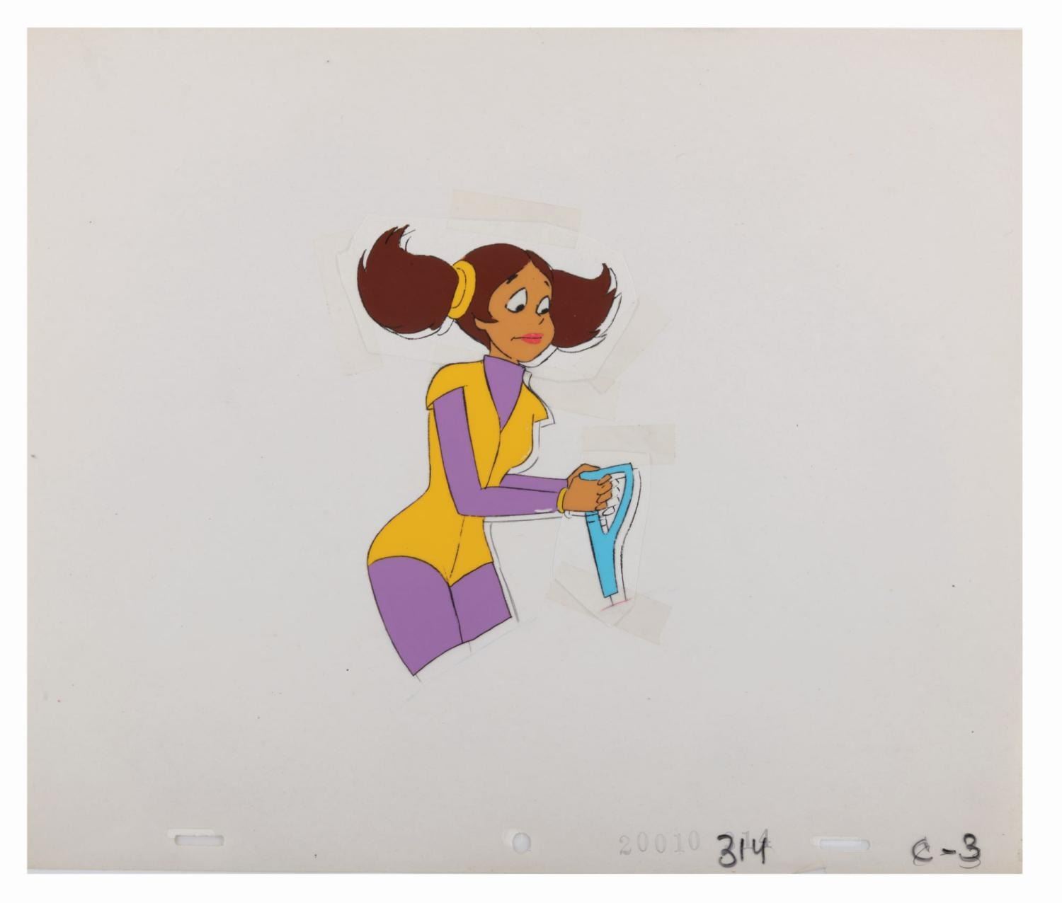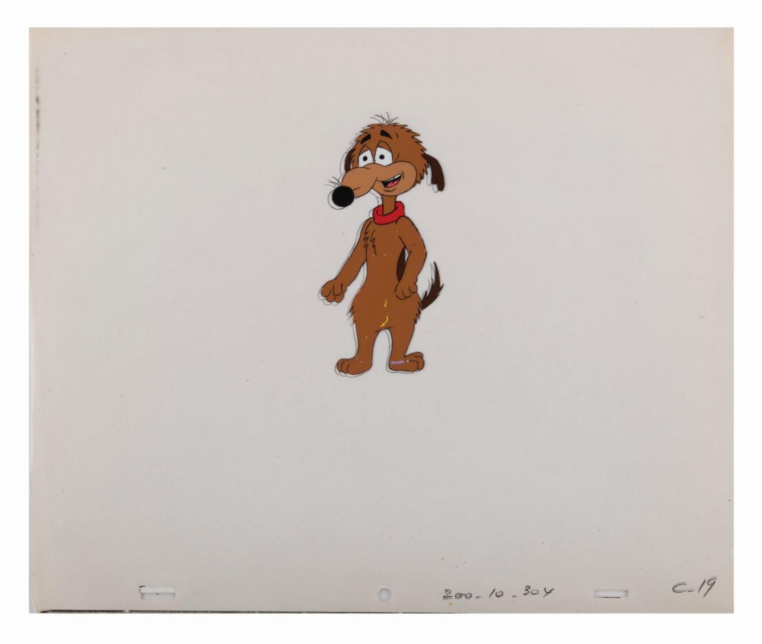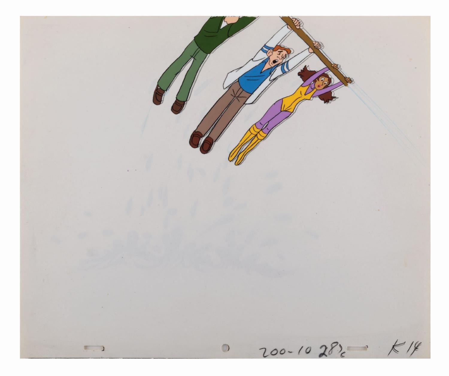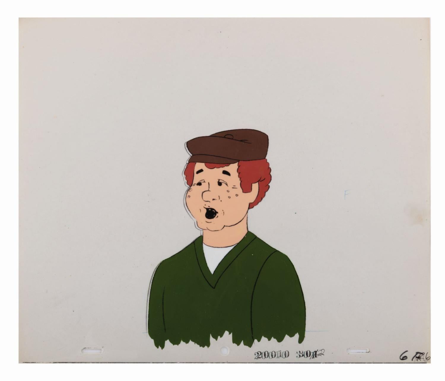 (Hanna-Barbera, 1980s) A collection of production cels and drawings from "Fonz and the Happy Day Gang" featuring The Fonz, Richie, Ralph, Cupcake, and Cool the dog. Included are 17 cels, some of which are eye, mouth, or effects layers, and 14 production drawings. Measuring 10.5" x 12.5", the cels and pencil drawings are in good, production-used condition with light discoloration, soiling, and spots where the cels have adhered to the drawing.