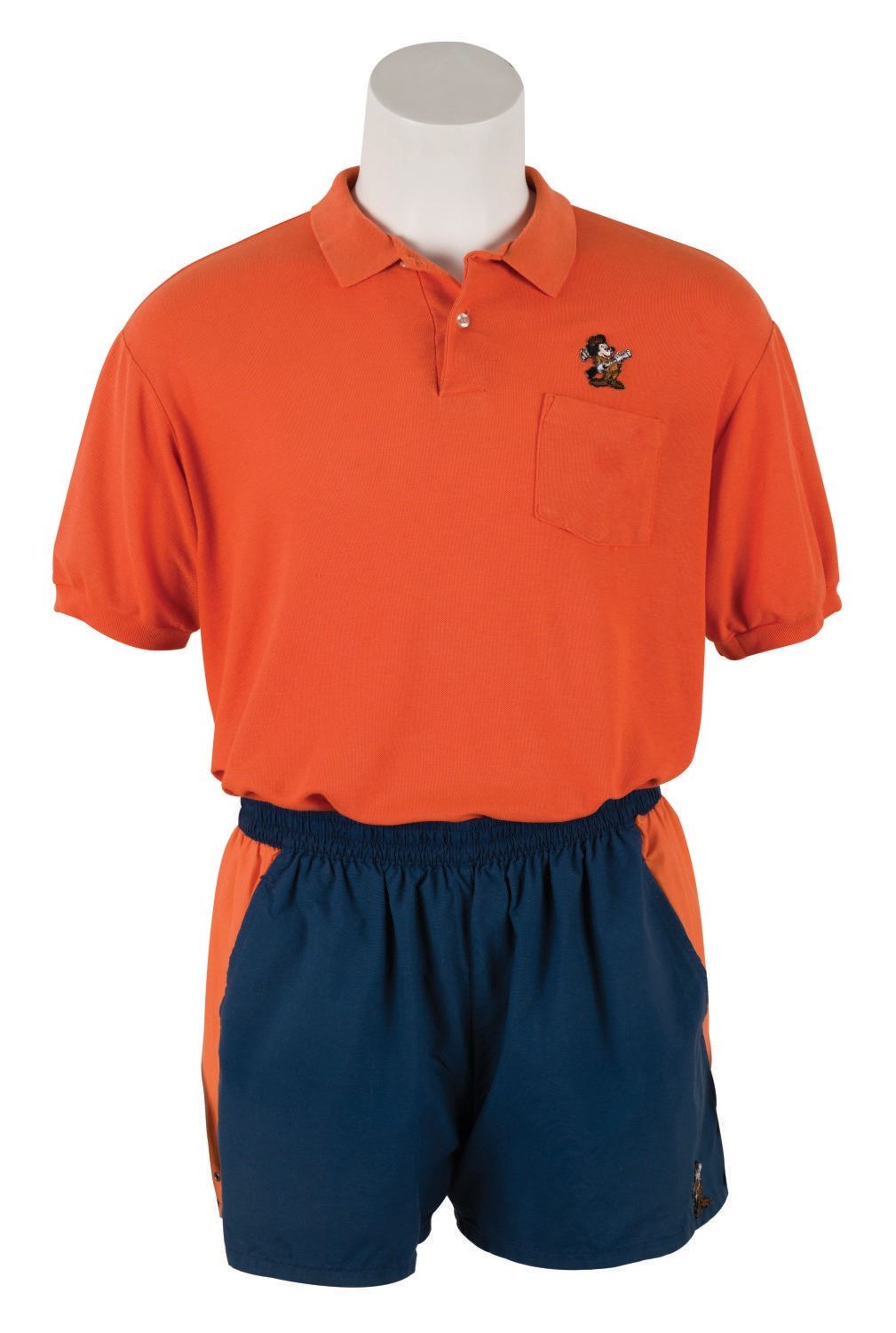 (Fort Wilderness, 1970s-80s) A very rare shirt and shorts worn by Cast Members in areas of Fort Wilderness Campground & Resort at Walt Disney World Vacation Kingdom. The shirt measures "XL" while the size of the shorts is unknown, and each piece is in good overall condition, featuring an embroidered Mickey Mouse in pioneer clothing, and exhibiting slight wear from use.