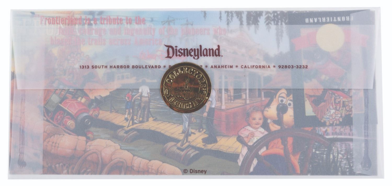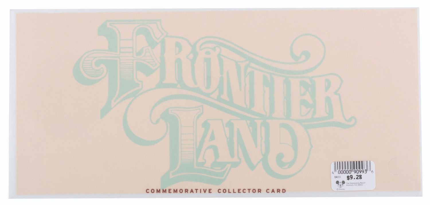 (Disneyland, 1999) A Frontierland Commemorative Collector Card with the original envelope from Collector's Series II. The card features Big Thunder Mountain with a gatefold cardstock display including a quote from Walt Disney about the land. Measuring 5" x 11", the card is in presumed fine condition and sealed in its original envelope.