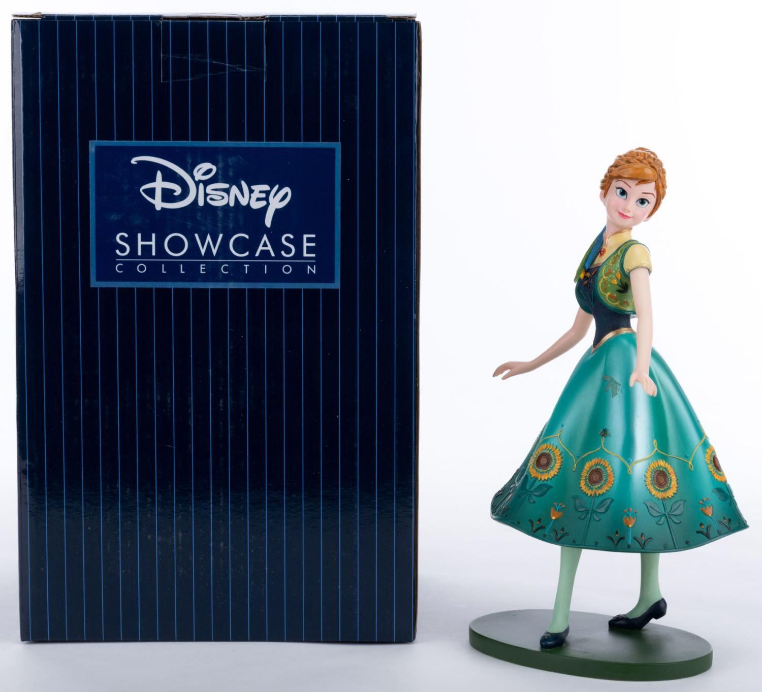 (Enesco, 2015) A Disney Showcase Collection 'Couture de Force" series figurine of Anna from Disney's "Frozen Fever" featurette. Measuring 4.25" x 3.5" and 7.75" tall, the stone resin figurine is in fine condition and comes with the original 6.25" x 5.5" x 9.5" box.