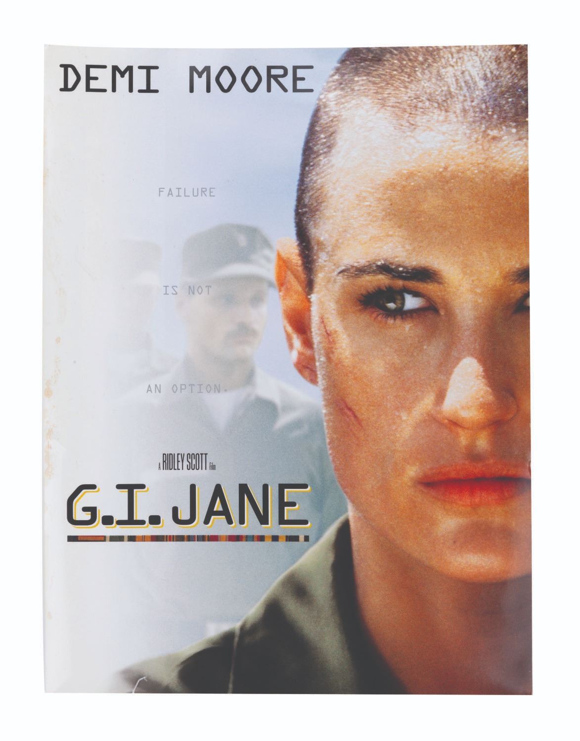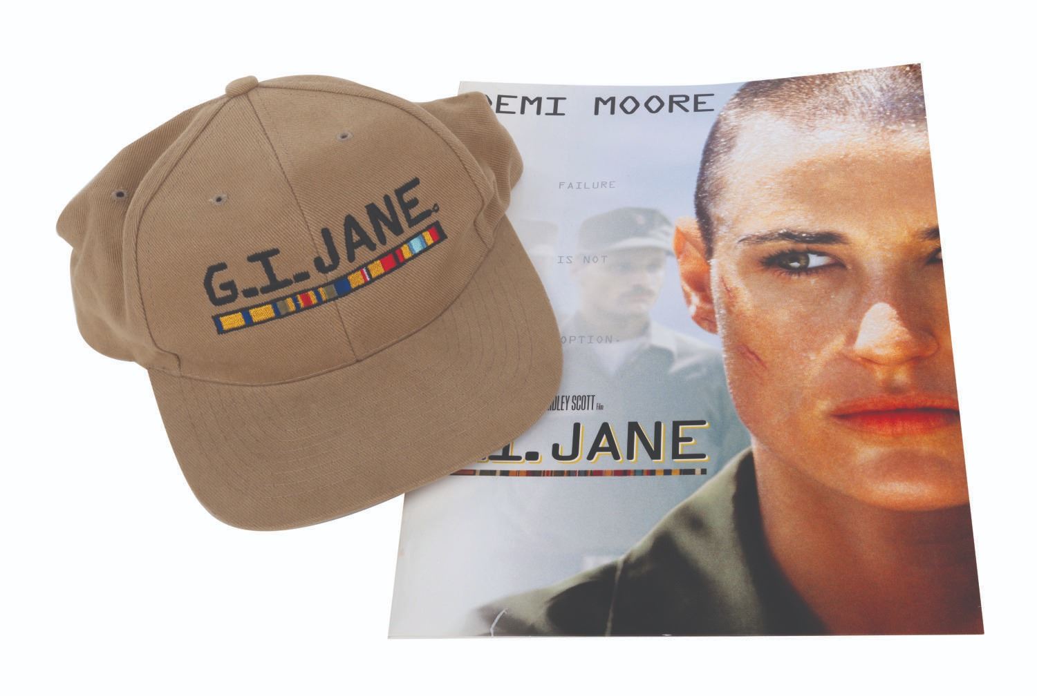 ( Hollywood Pictures, 1997) A Press Kit for the film G.I. Jane starring Demi Moore, with a promotional cap for the film. The folder includes the production book for the film, a premiere program, and (6) 8"x10" publicity stills. Measuring 9"x11.5", the press kit is in very good condition, with light spotting to the folder spine. The cap with cloth adjustable strap is one size fits all, in fine unworn condition.