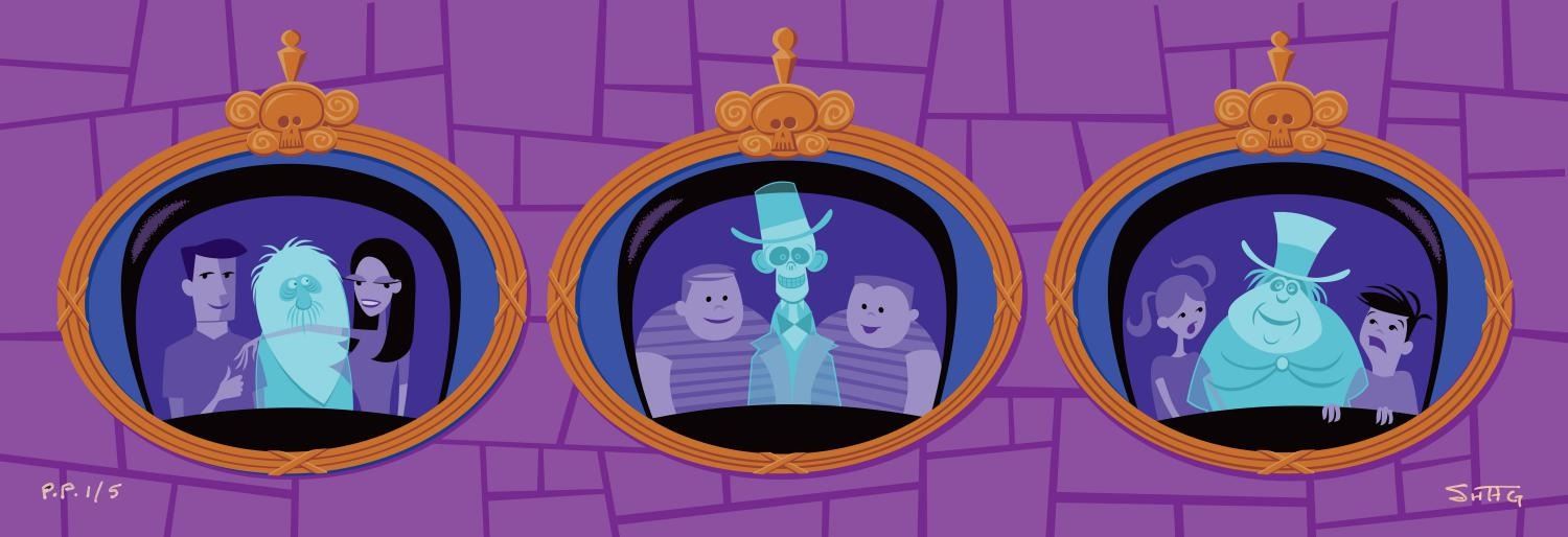 (Disneyland, 2009) A signed "A Ghost To Follow You Home" print by SHAG for the 40th anniversary of Disneyland’s The Haunted Mansion. SHAG signed the bottom right of the printer’s proof, numbered 1 of only 5. Measuring 35" x 12", the giclee on canvas print is in fine condition.