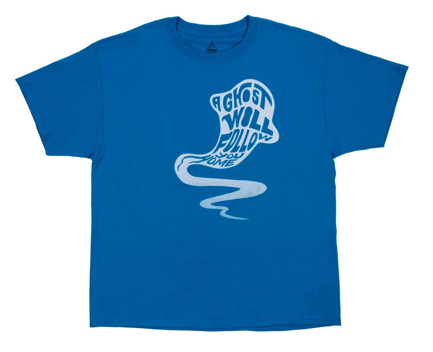 (Disneyland) A Disneyland Haunted Mansion "A Ghost Will Follow You Home" t-shirt, with the popular expression on the front and the Hitchhiking Ghosts pictured on the reverse. Measuring a size XL, the shirt is in fine condition.