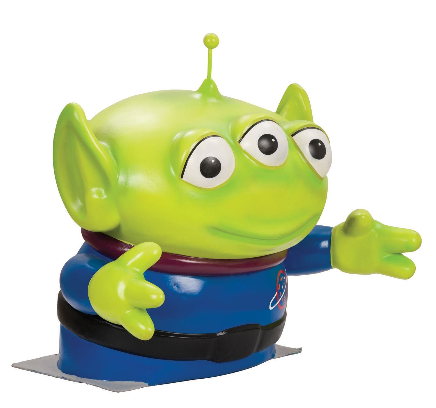 (Walt Disney World, 1990's-2000's) A giant alien statue from an early Toy Story retail space at Walt Disney World. Several of these aliens were outside the store, underneath the giant claw they worshipped in the film. Measuring 34"x36"x22.5", the piece is in very good condition with light scuffs and wear from display.