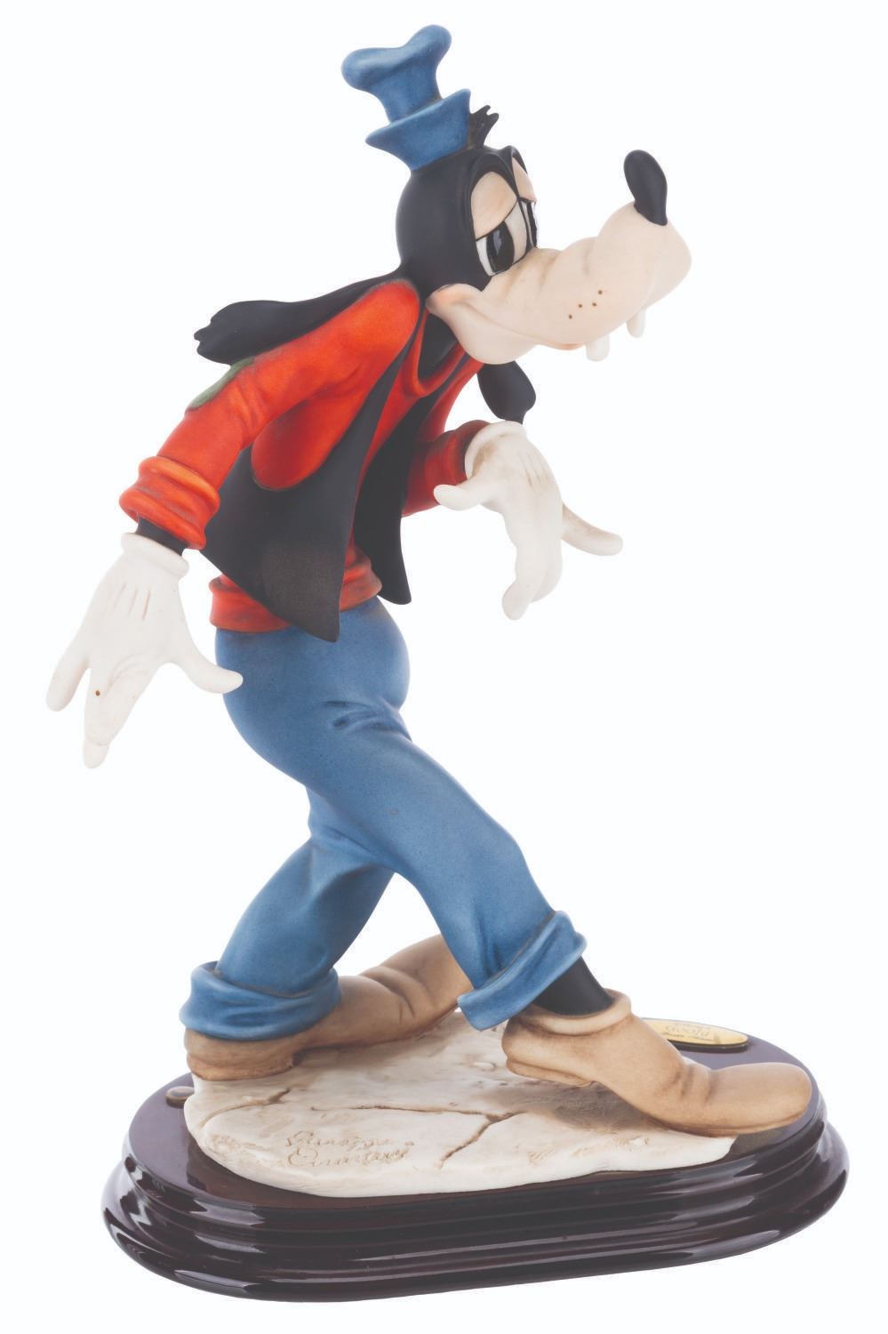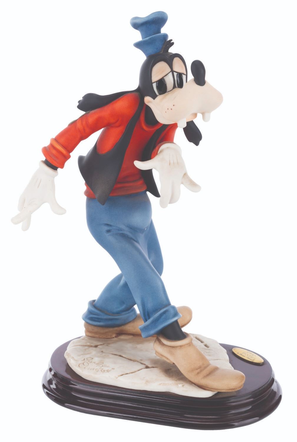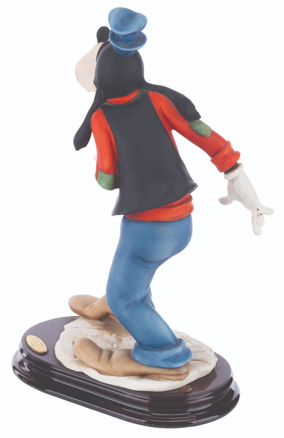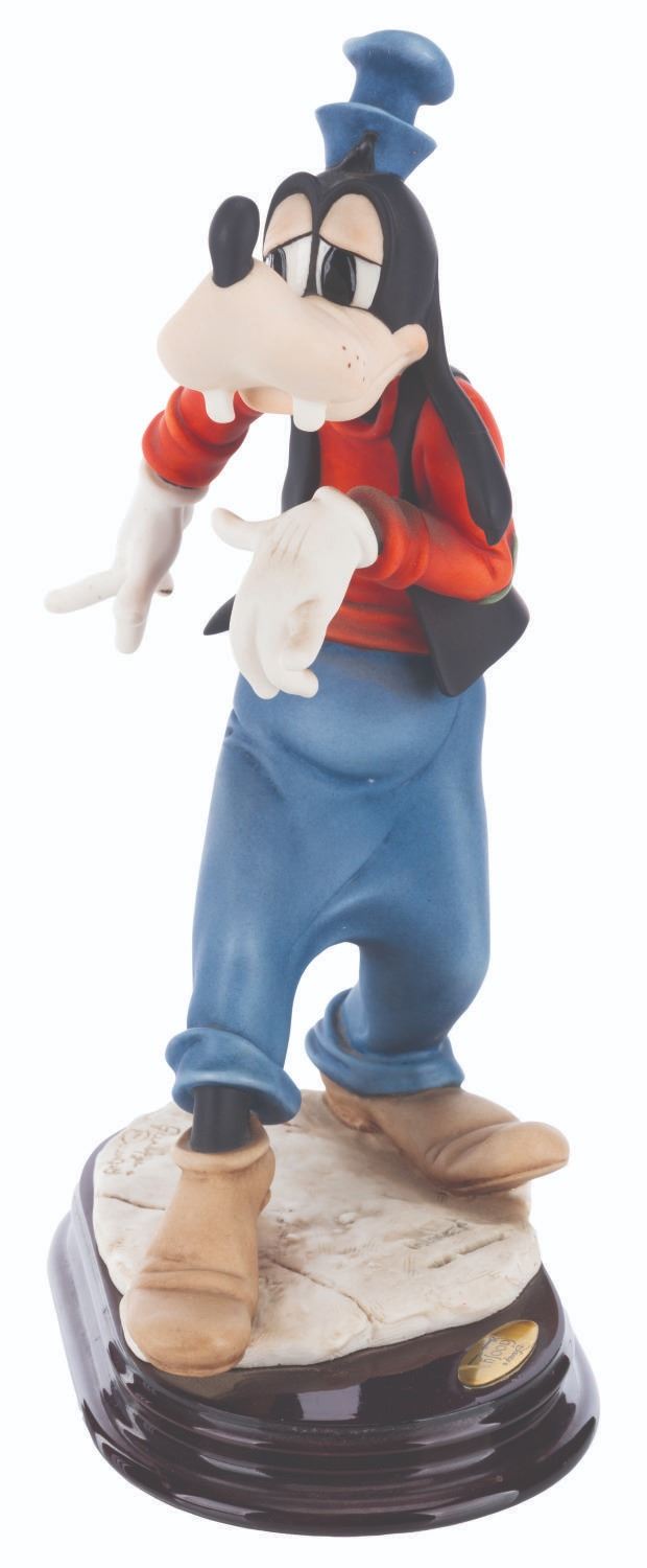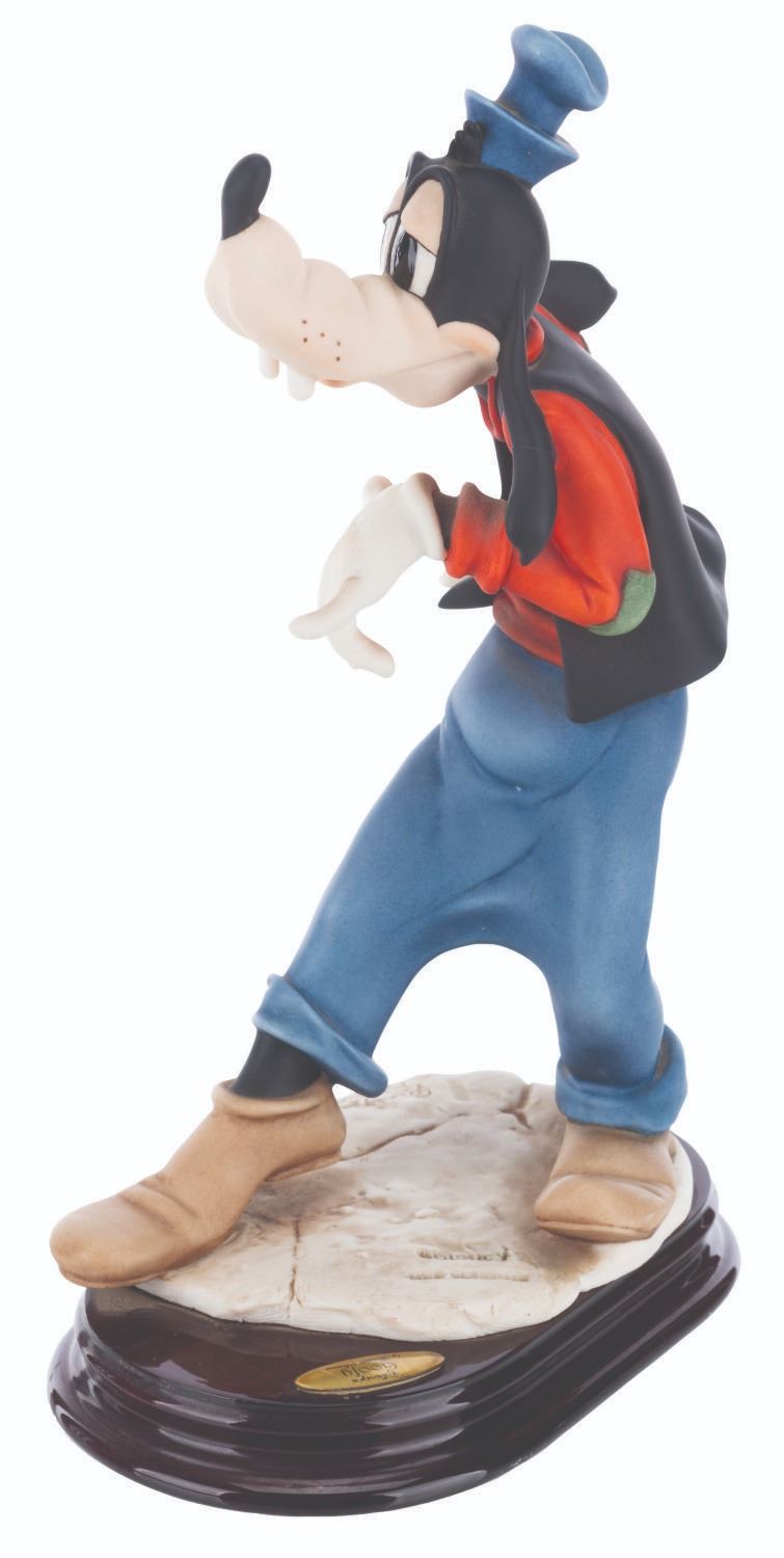 (Giuseppe Armani, 1998) A fine art sculpture of Goofy by artist Giuseppe Armani. Measuring 6.5” x 4” x 11” tall, the resin sculpture displays in very good condition with light stains and a visible repair to the left ear.