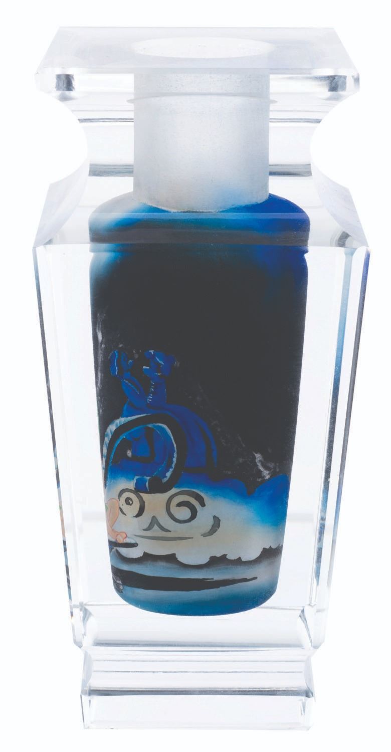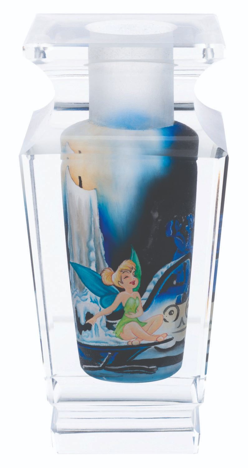 (Marimo Craft Co., 2000s) A limited edition Tinker Bell hand-painted and sculpted, fine art glass vase based on an original painting titled "Mischievous" by Jim Salvati. The vase measures 2.75" x 6.5" and is in fine condition.