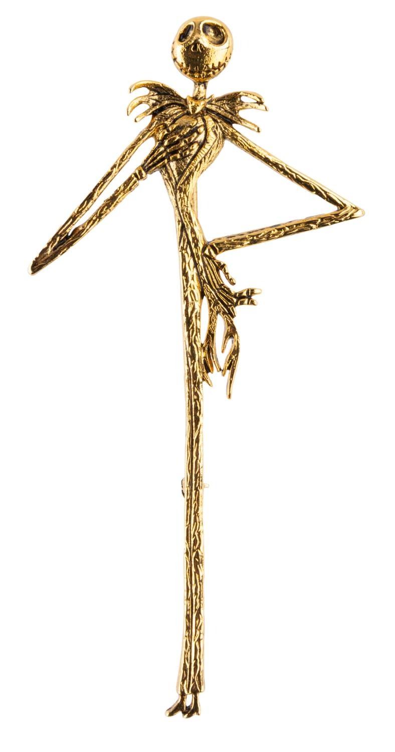 (Disney, 1993) A delicate golden pin of Jack Skellington from "The Nightmare Before Christmas." Measuring 3.75" x 1.75", the pin is in fine condition.