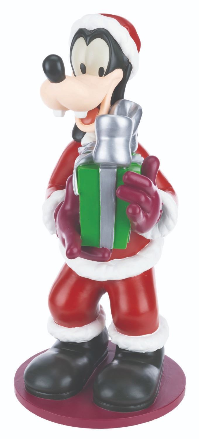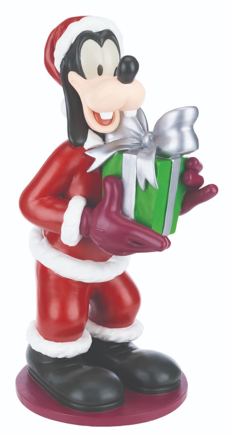 (Disney, 2006) A Goofy Christmas big fig released in 2006 as part of a series featuring Mickey, Minnie, Donald, and Pluto. Measuring 8.25” x 9” x 17.5” tall, the figure displays in very good condition with light scuffs, scratches, and wear.