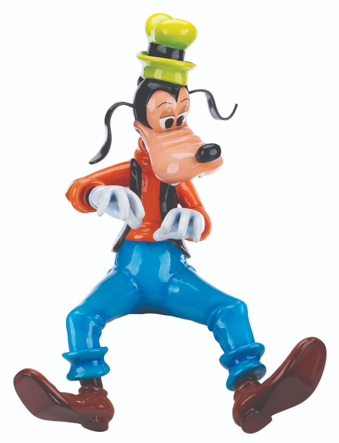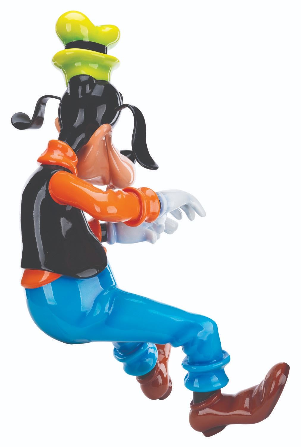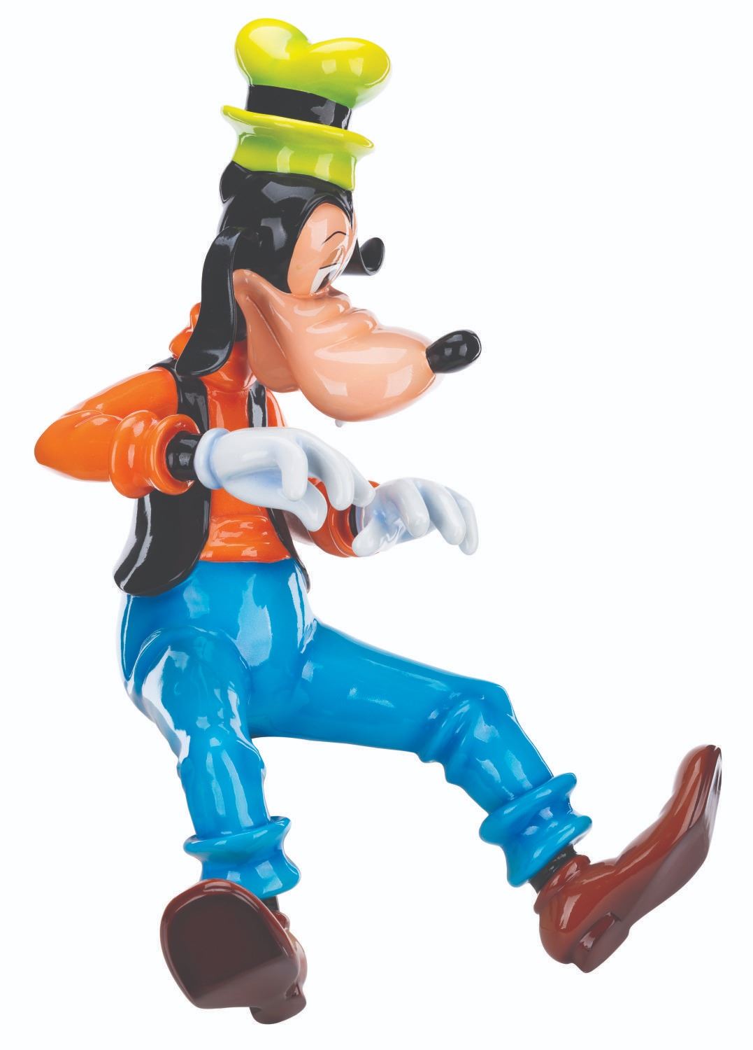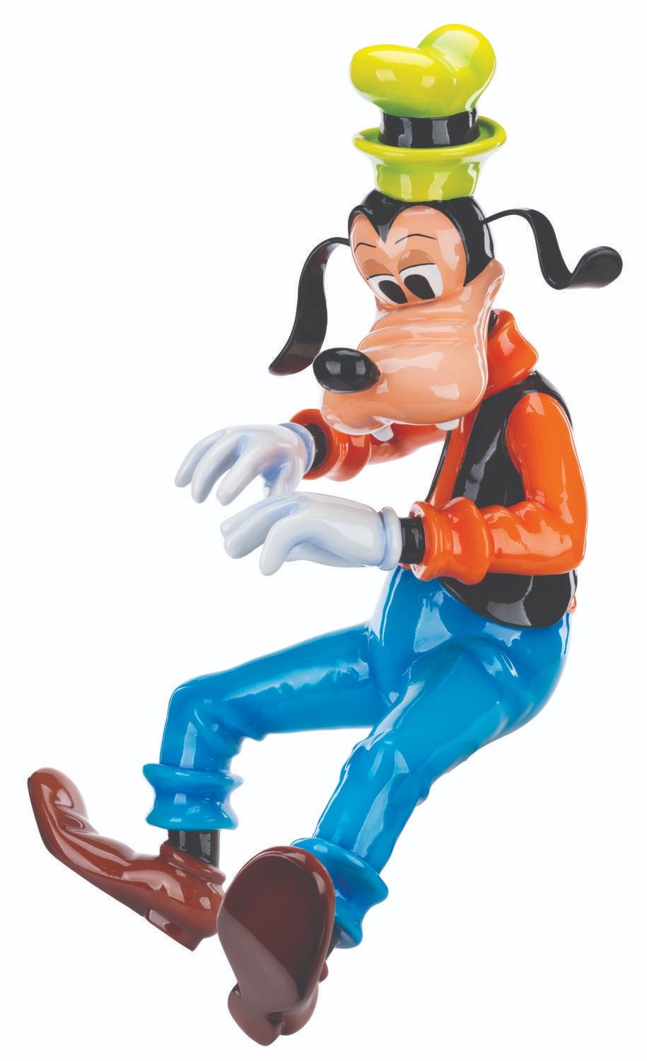 (Disney, 1990s-2000s) A Disney Store display figure of Goofy in a sitting position. Measuring 23" x 26" x 36" tall, the figure is in very good condition with light scuffs, scratches, wear, and a break in the left ear which has been repaired. Due to size and weight, this lot requires special shipping arrangements. Please inquire before bidding.
