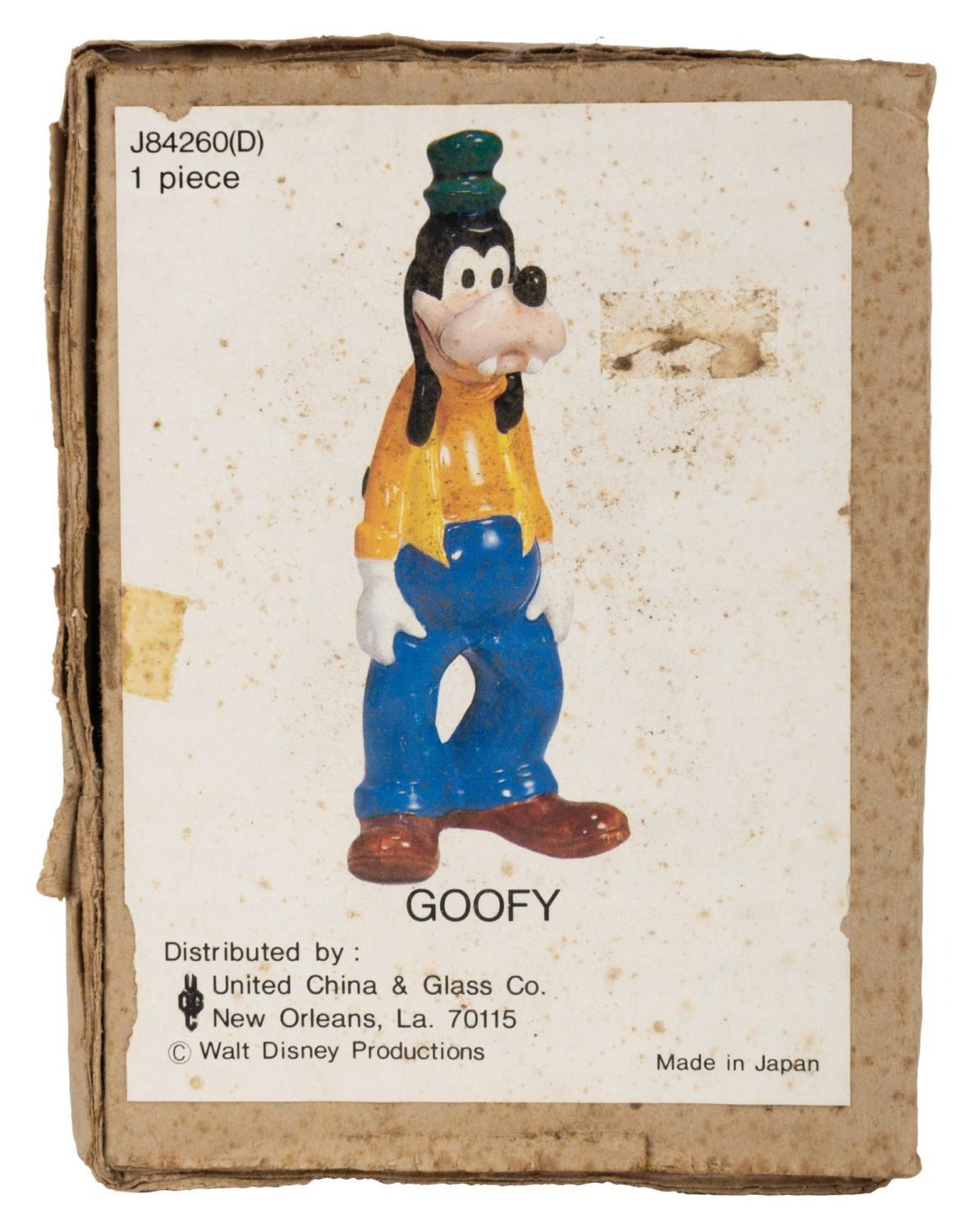 (UC&G, 1980s) A Goofy figurine manufactured in Japan by United China & Glass. Measuring 4.5" tall, the figure comes with its original box and is in good condition with chips, scuffs, and paint loss.