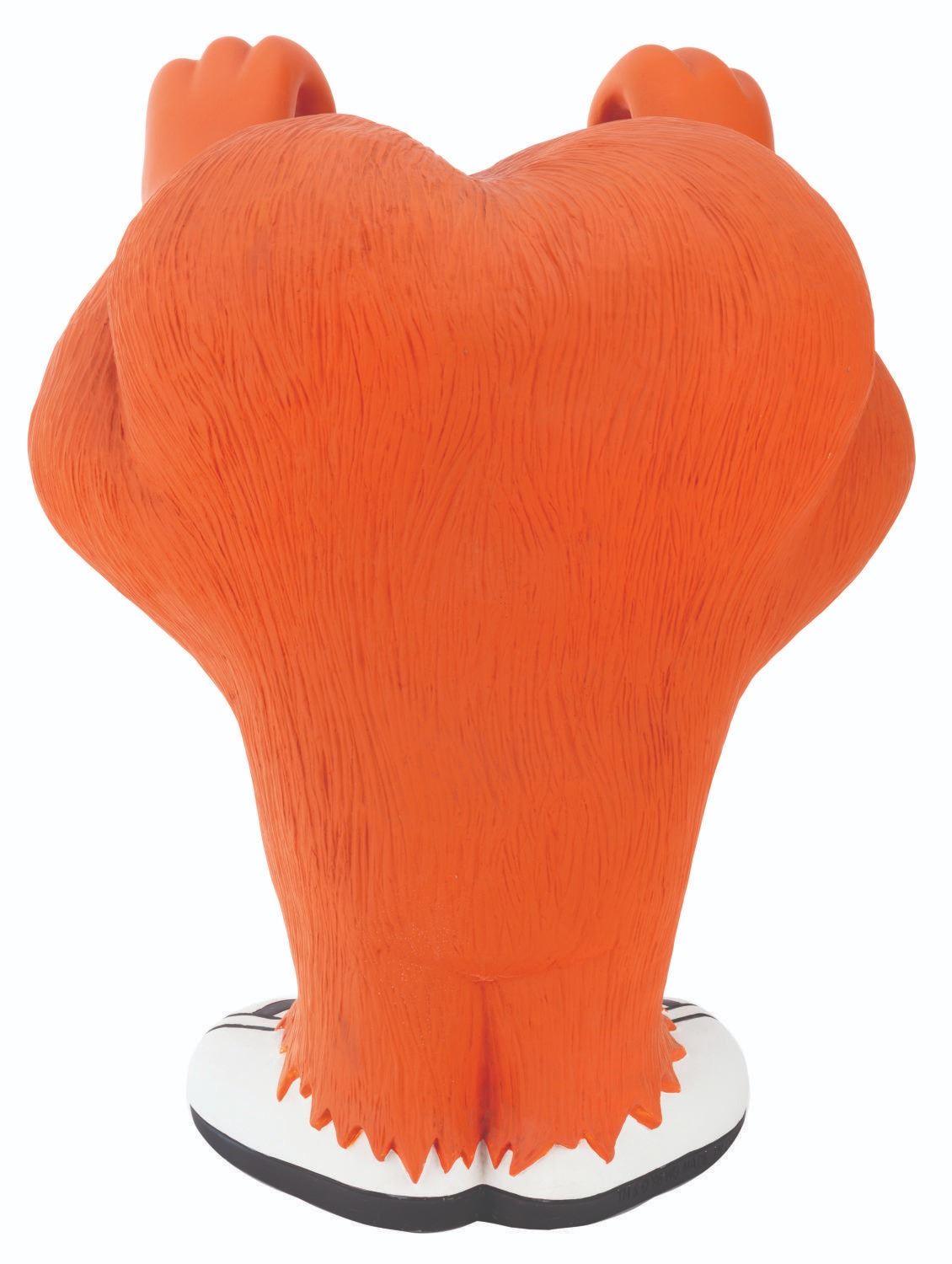 (WB Studio Store, 1996) A Gossamer statue created exclusively for the Warner Bros. Studio Store. Measuring 16" x 13" x 20.25" tall, the painted resin statue is in very good condition with light scratches, paint smudges, and wear.