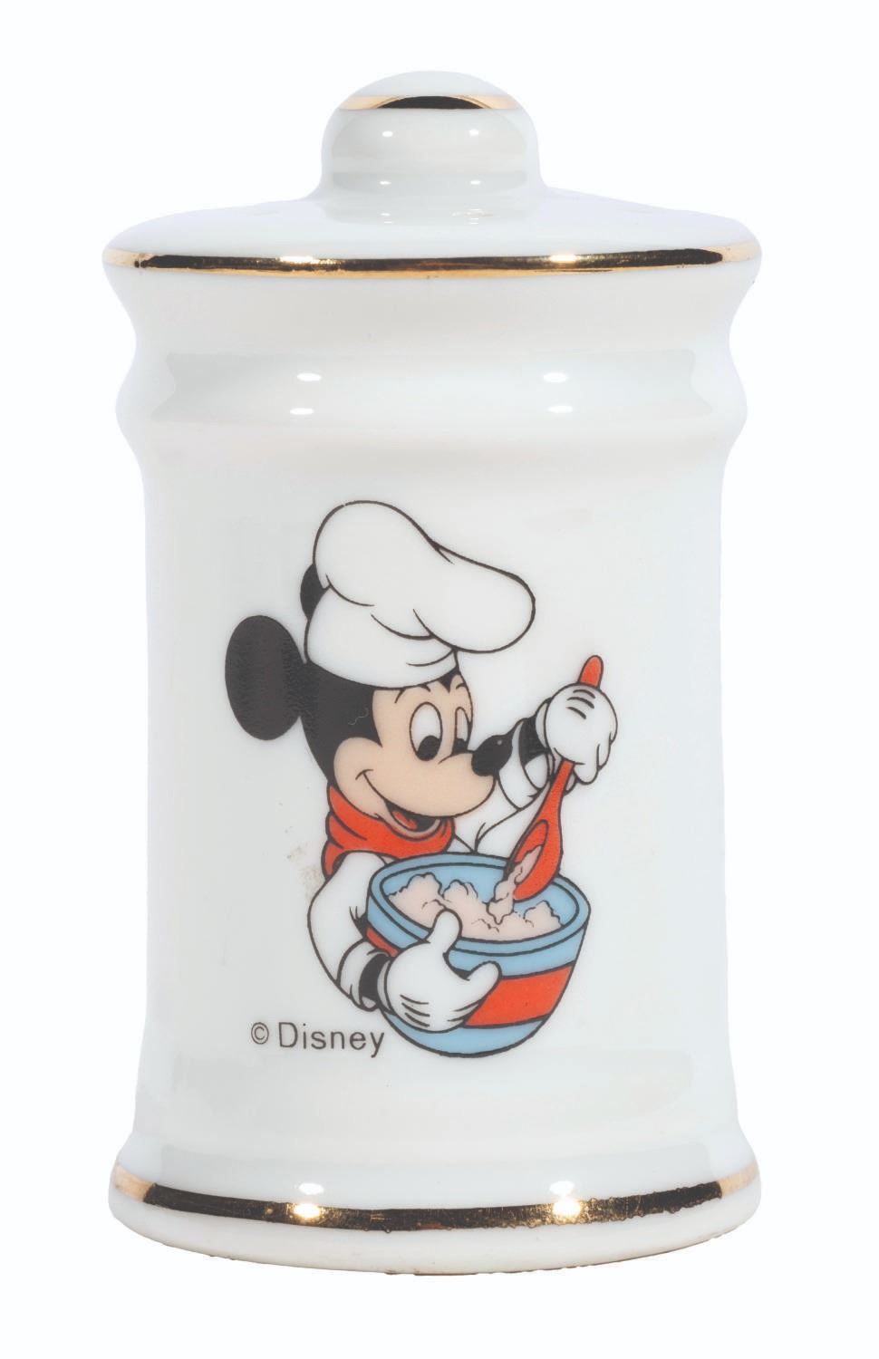 (Disneyland, 1990s) A single Gourmet Mickey salt shaker. Measuring 1.75" in diameter x 2.75" high, the shaker is in very good condition with light wear and faint crazing.