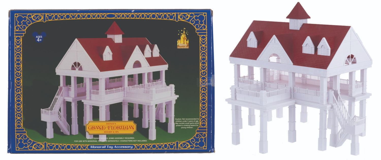 (Walt Disney World, 2000s) A Disney’s Grand Floridian Resort & Spa Monorail playset accessory from the Walt Disney World Monorail Collection. Measuring 14” x 22” x 16” tall with its original 6.75” 17” x 12” box, the toy is in very good condition with light scuffs on the roof and a small stain on one side.