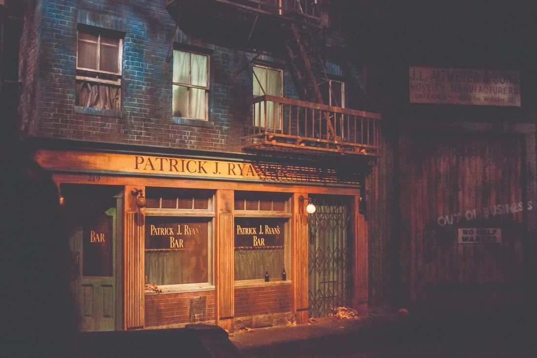 (Walt Disney World, 1980s-2000s) A window pane from Patrick J. Ryan’s bar, featured in The Great Movie Ride. Patrick J. Ryan is a bootlegger and mob boss from the 1931 Warner Brothers classic “The Public Enemy.” The film’s bar was part of the gangster scene in the now-closed attraction that celebrated our love of movies. Measuring 39.75” x 43.5”, the plexiglass window pane displays in good condition with intentional distress, sections of scratches, long scrapes, paint loss, and wear from Park use.