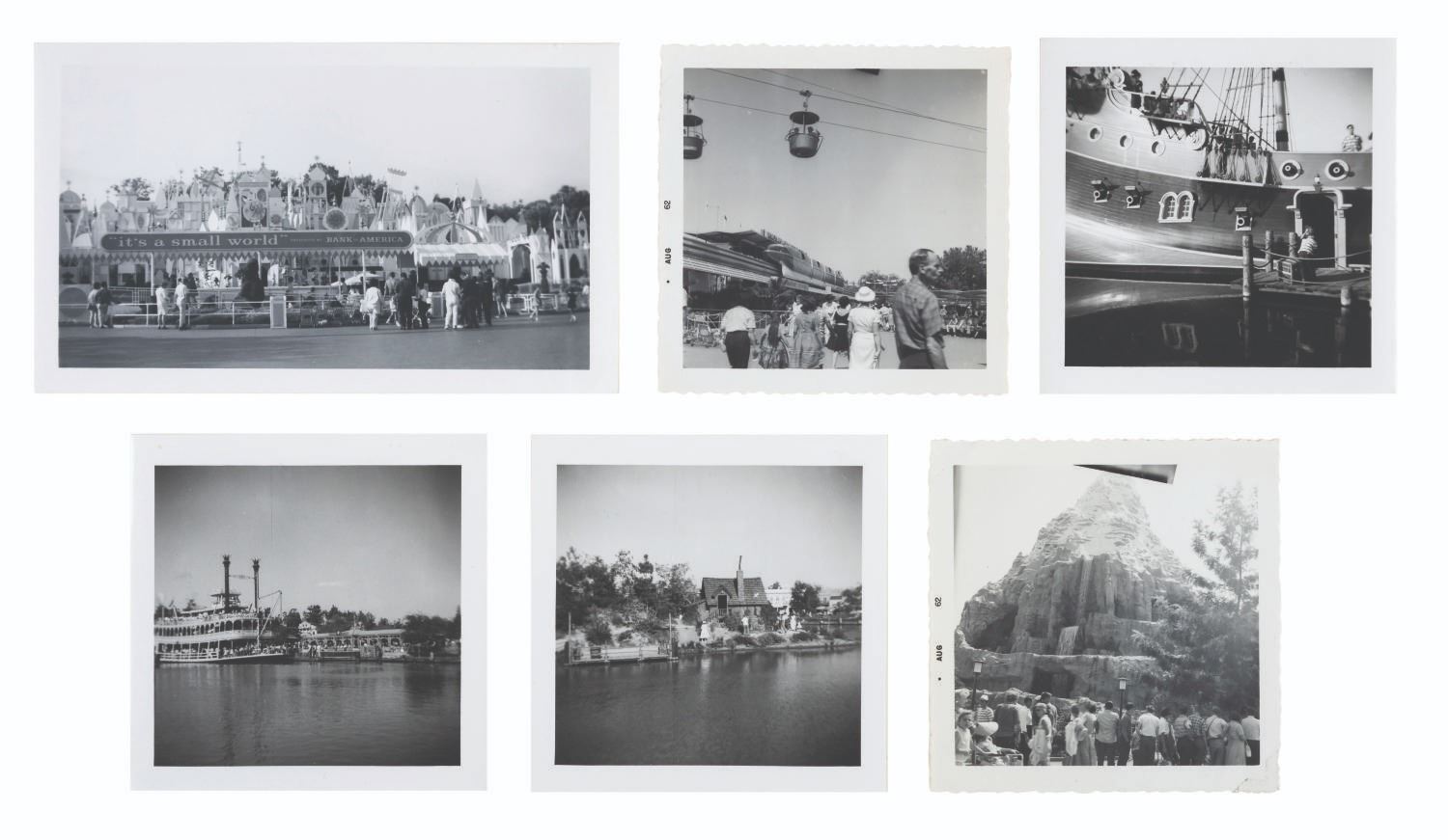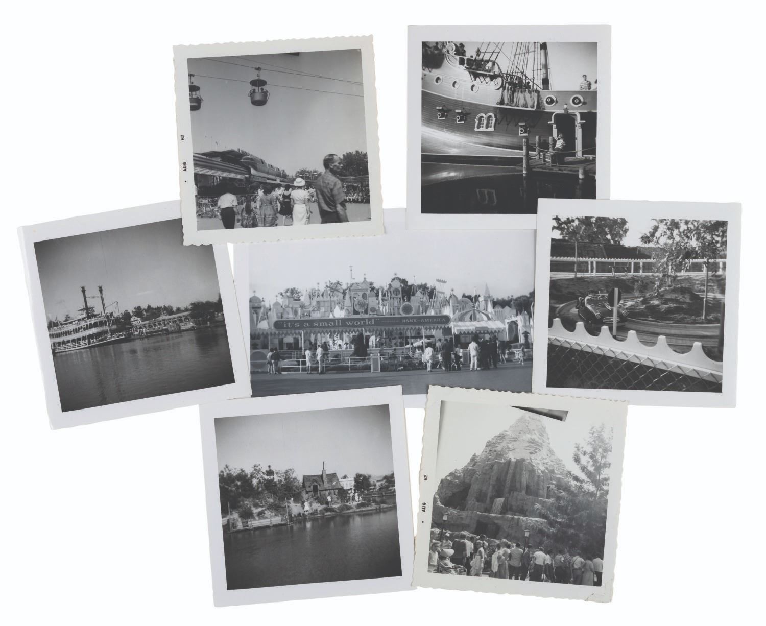 (Disneyland, 1960s) A collection of nine Disneyland photos, including images of Midget Autopia, the Skyway, and the Matterhorn. Also included are three additional photos from other amusement parks. Measuring 3.5" x 3.5" and 5.75" x 3.5" each photo is in very good condition with minor wear.