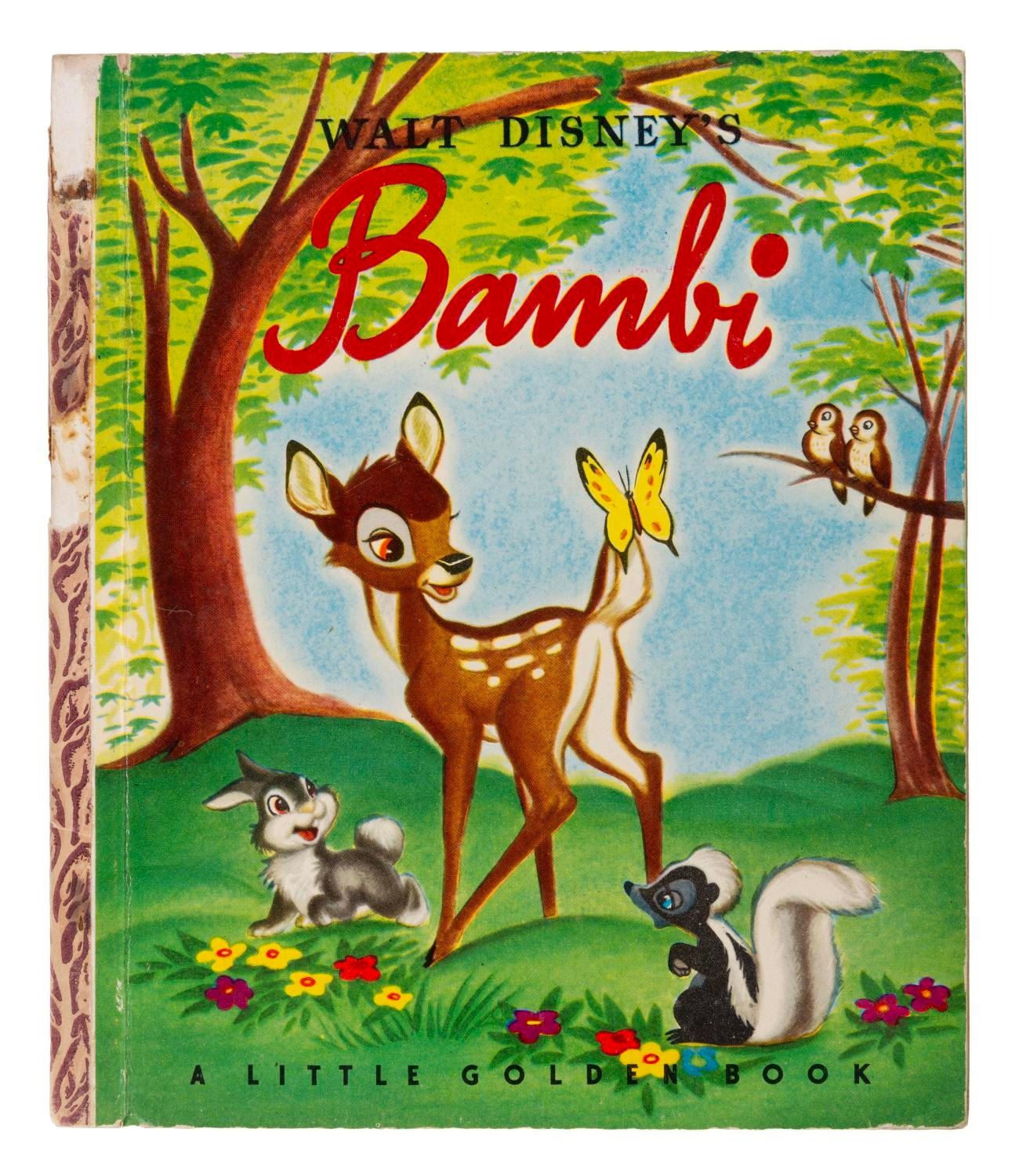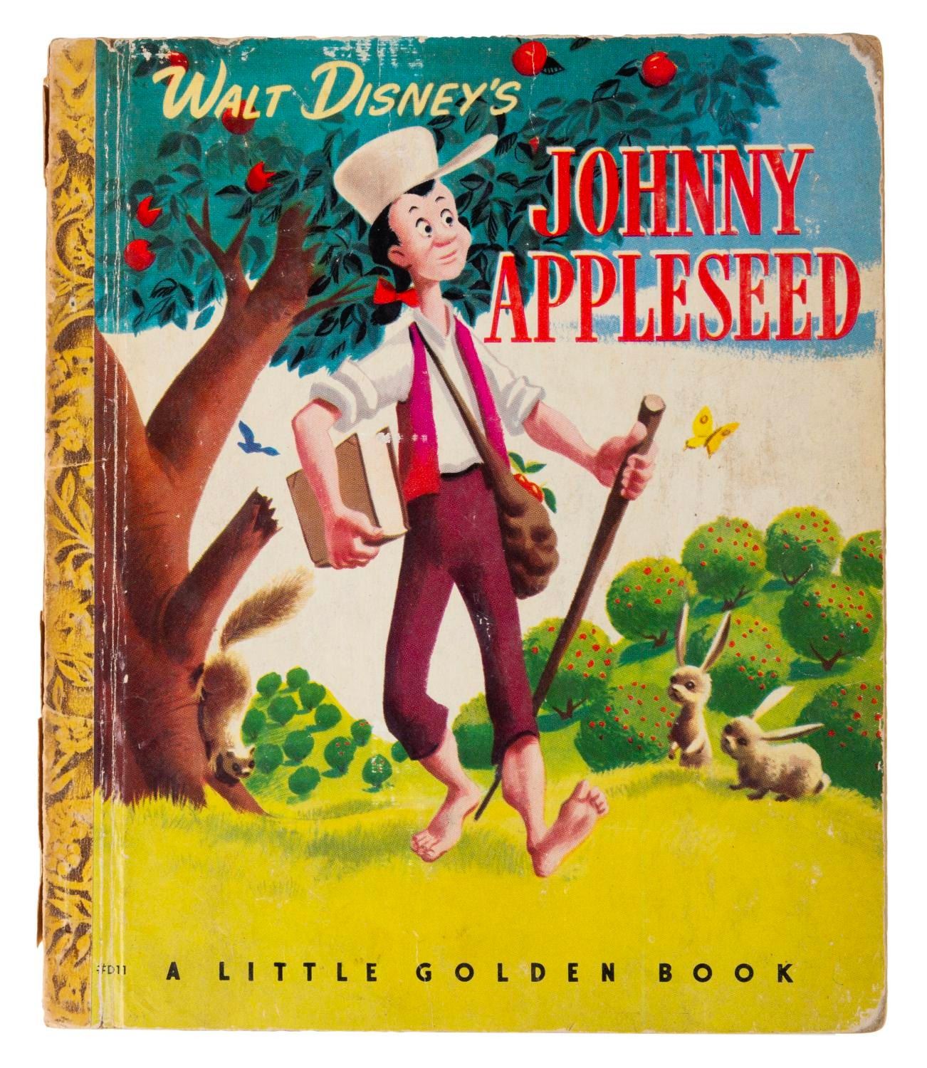 (Golden Press, 1940s) A collection of four Little Golden Books including "Bambi," "Thumper," "Johnny Appleseed," and "Uncle Remus." Measuring 6.5"x8" each, the books are in good condition with scuffing, staining, discoloration, edge wear, and paper loss to the covers due to age and handling. Some of the books have names inscribed inside. Three of the books are Edition "A" (First Printing). The Uncle Remus Book is a later printing.