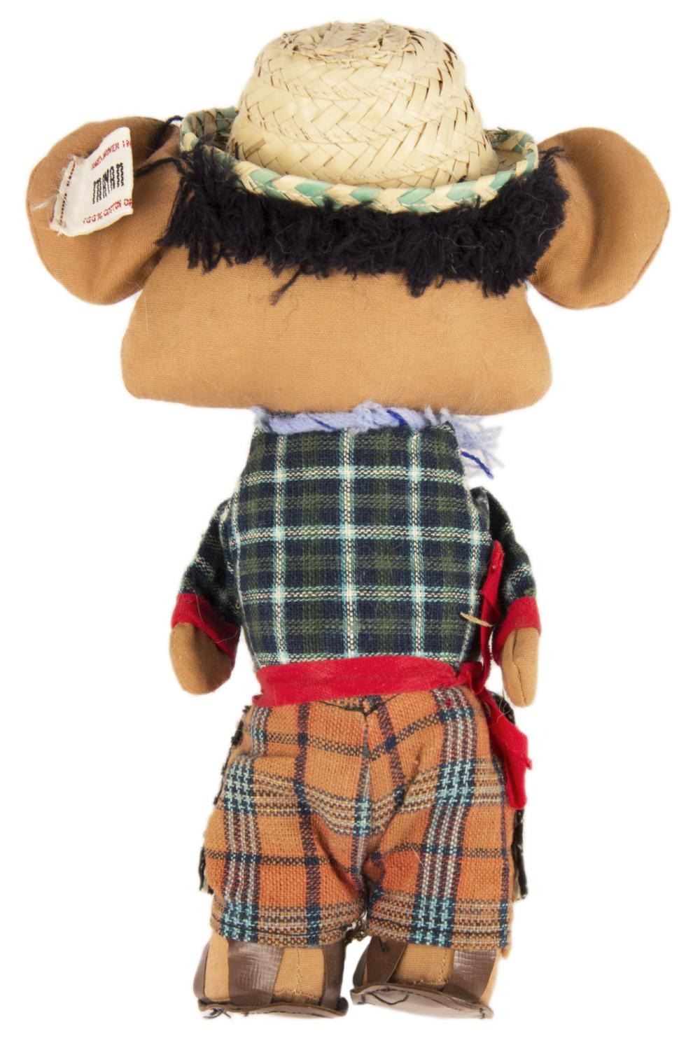 (Disneyland, 1960s-70s) A unique mouse doll that was sold in the Guatemalan Weavers store in Disneyland’s Adventureland. A label on its ear reads, "Hand-woven in Guatemala by Mayan Modern, 100% cotton of exclusive design." Measuring 9" tall, the stuffed cloth doll with a wicker hat, and buttons for eyes is in very good condition overall with some minor fraying to the thread on its clothing.