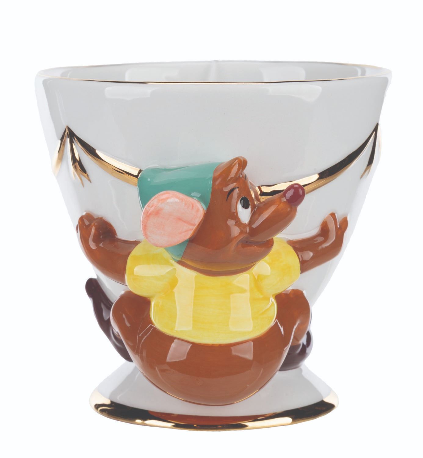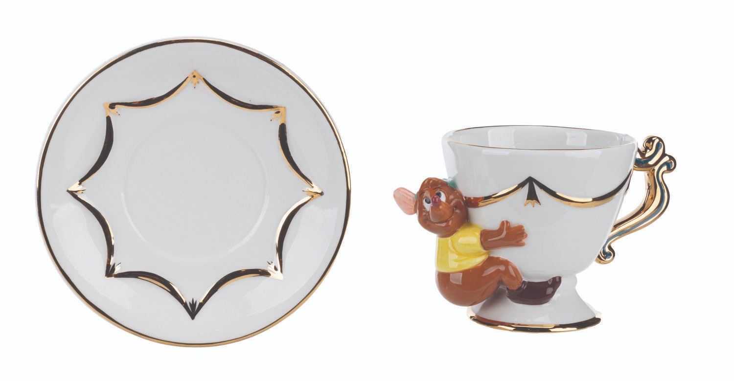 (Disney Store, 1990s-2000s) A "Cinderella " Cup and Saucer set with the little mouse Gus clinging to the cup. The china set is in fine as-new condition.