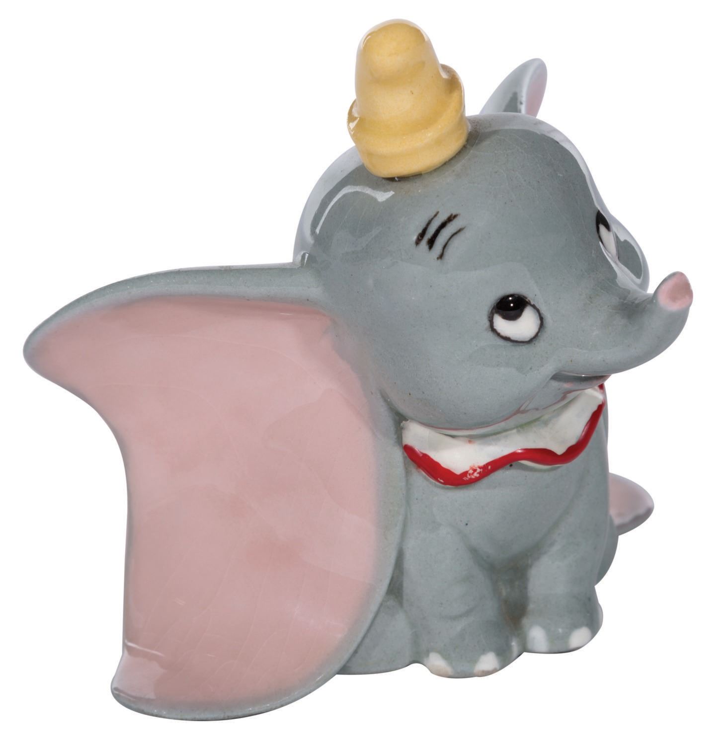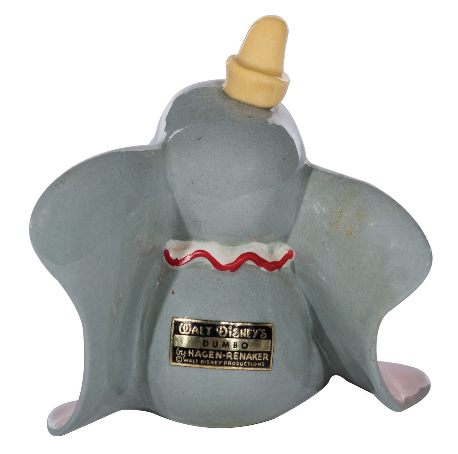 (Hagen-Renaker, 1950s) A rare Hagen-Renaker ceramic figure produced in the 1950s. Known for their line of miniature figurines, they also produced a small amount of larger figures and banks, This 3.75" tall Dumbo is in fine condition with the original label on his back. An excellent example of this scarce figure.