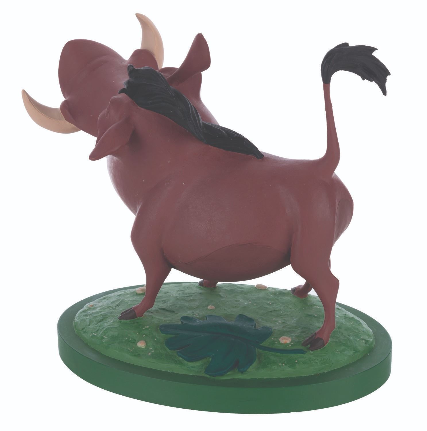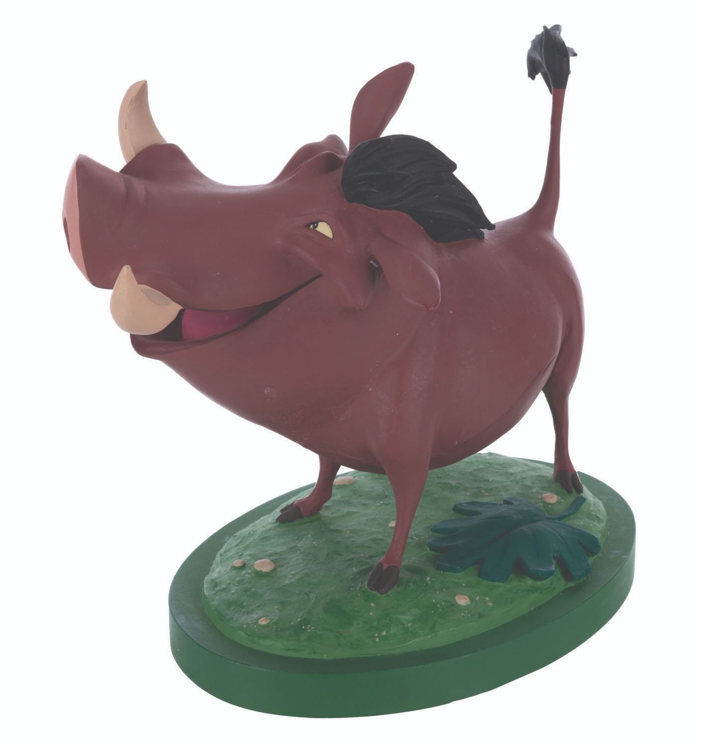 (Disney, 1994) A production-used animator’s maquette of Pumbaa, from Disney’s 1994 animated feature “The Lion King.” Sculpted by Kent Melton for animator’s reference at Walt Disney Studios, this single Pumbaa was hand-painted by the Ink and Paint department at the Walt Disney Studios and offered for sale in the Sotheby’s “Art of the Lion King” auction in February of 1995. Pumbaa stands 8.75” tall atop a 9” x 6.25” base and is in fine condition.
