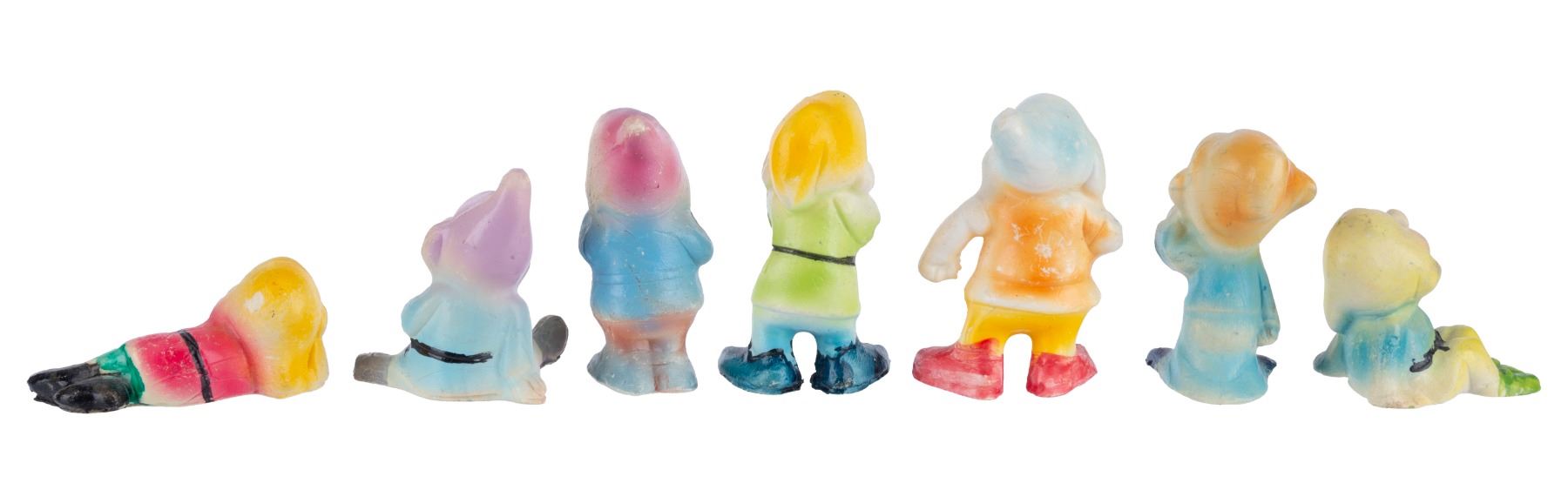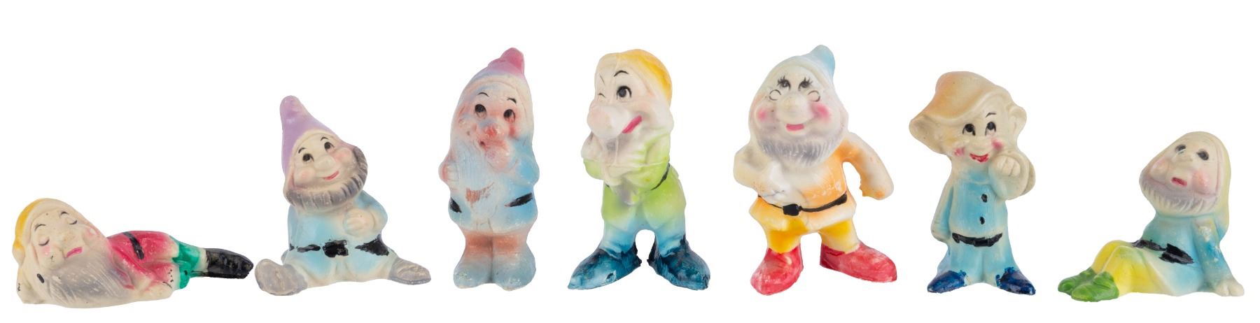 (Disney, 1970s) A collection of seven hand-painted figures of the Seven Dwarfs from Snow White. Ranging from 1.25" to 3" tall, each figure is in good condition overall with minor wear.Est. Opening Bid: $40.00