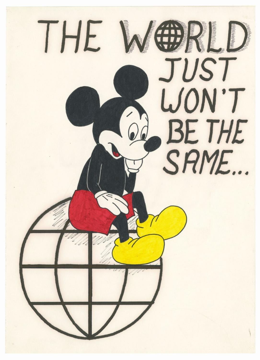 (Walt Disney World, 1980s-90s) A handmade Cast Member farewell card. Accomplished in marker and ink, the card includes 12 Cast Member signatures. The card measures 8” x 11" and is in very good condition with light wear and creasing to the reverse.