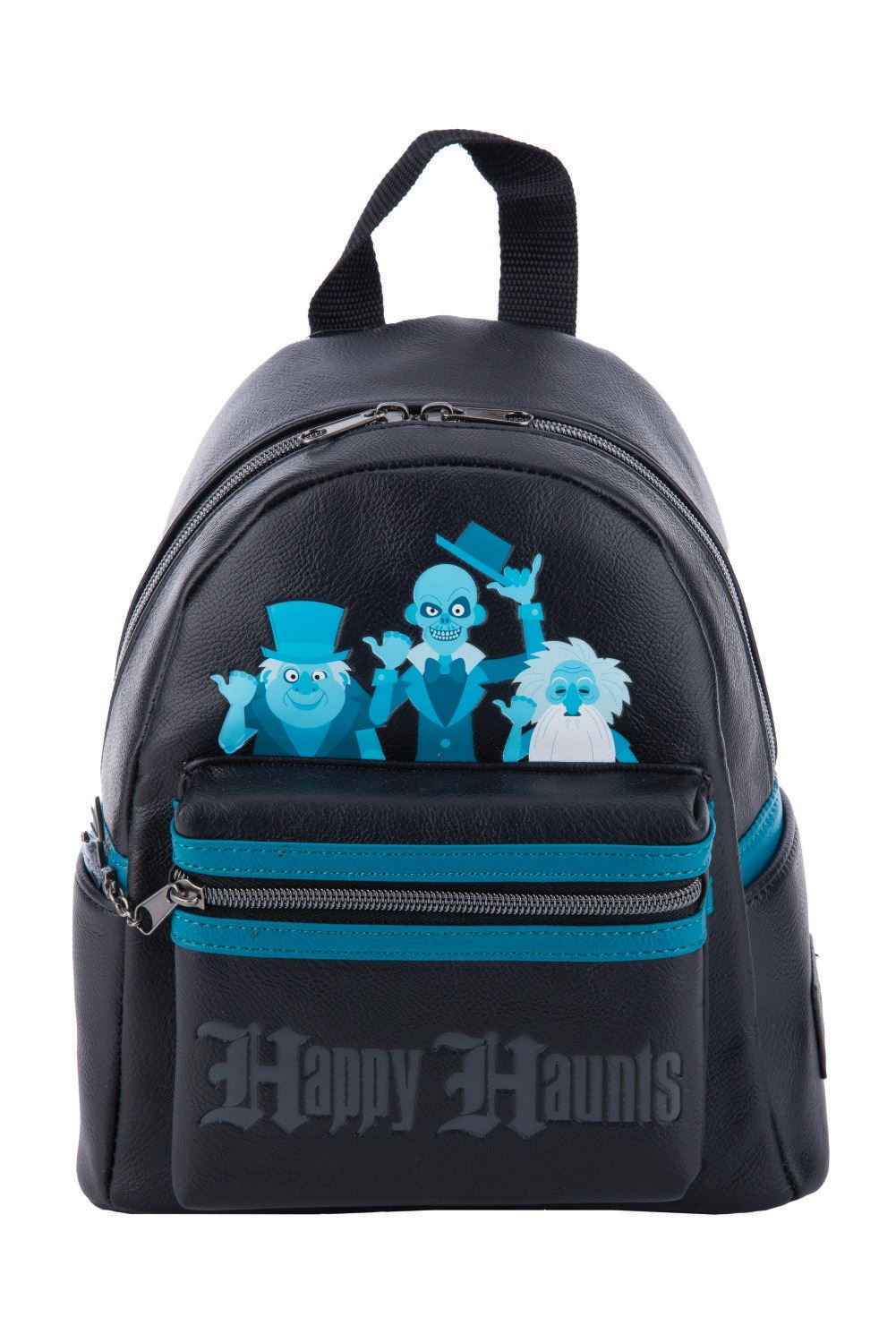 (Disney Parks, 2022) A Happy Haunts Mini Backpack by Loungefly. The mini backpack features Hitchhiking Ghosts Ezra, Phineas, and Gus with bat charms, adjustable straps, and is in fine unused condition.