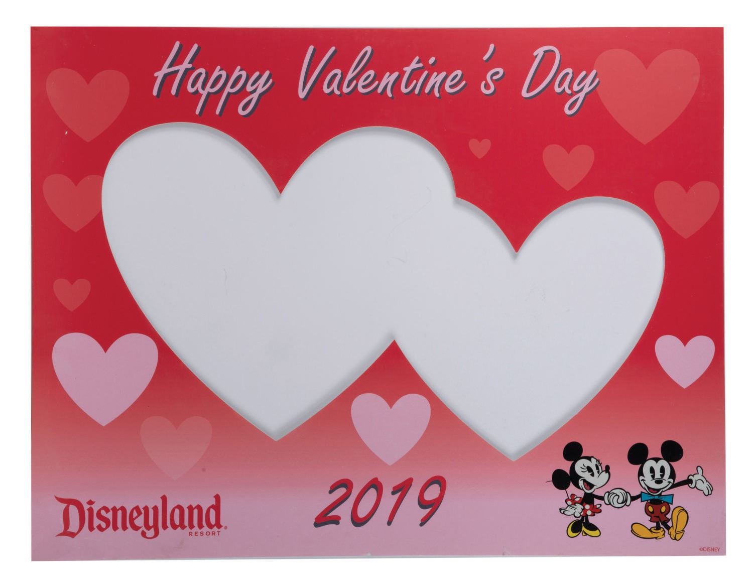 (Disneyland, 2019) A "Happy Valentine's Day" Photo Opportunity prop from Disneyland Resort. This prop was created for specific guest photo opportunities at Disneyland. Measuring 30"x23", the foam piece is in very good condition, with some wear to the reverse and edges from original Park use and guest handling.