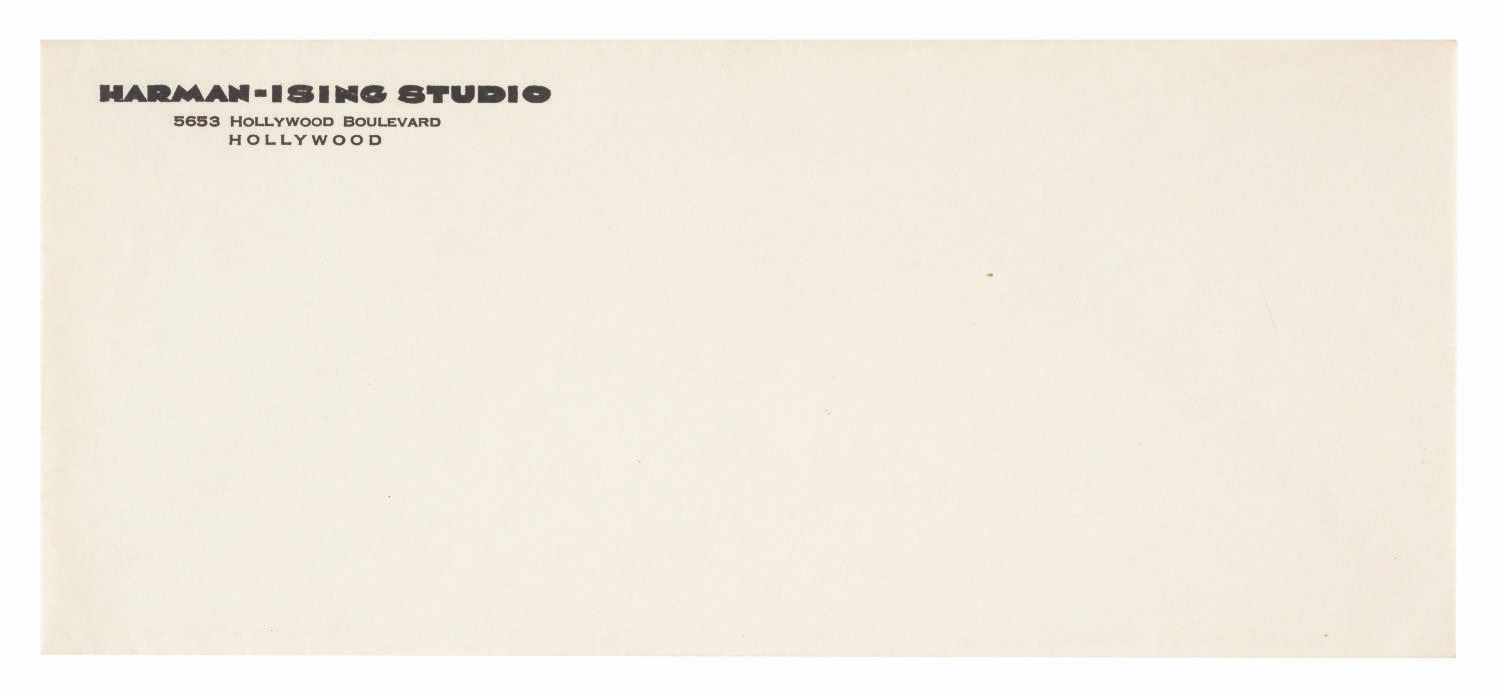 (Harman-Ising, 1929-38) A very rare unused envelope from the Harman-Ising Studio. measuring 4.25” x 9.5”, the envelope is in fine condition with very slight wear from age.