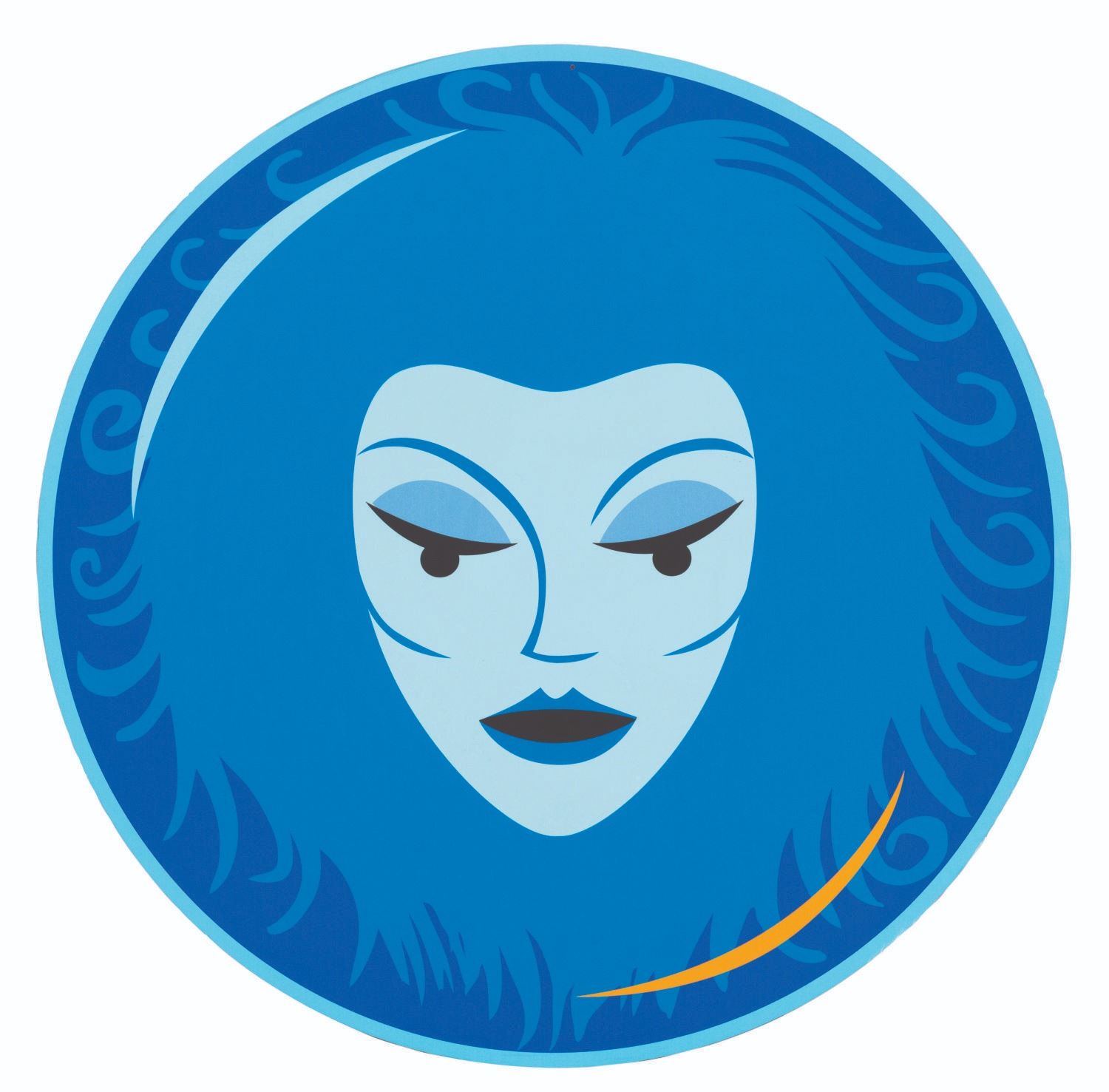 (Disneyland, 2009) A large sign displayed at The Haunted Mansion 40th Anniversary merchandise event of Madame Leota, based on art by artist Josh Agle, aka SHAG. SHAG released new pieces exclusively for the event. Measuring 40” in diameter, the vinyl board sign displays in very good condition. Due to size, special shipping arrangements may be required. Please inquire before bidding.