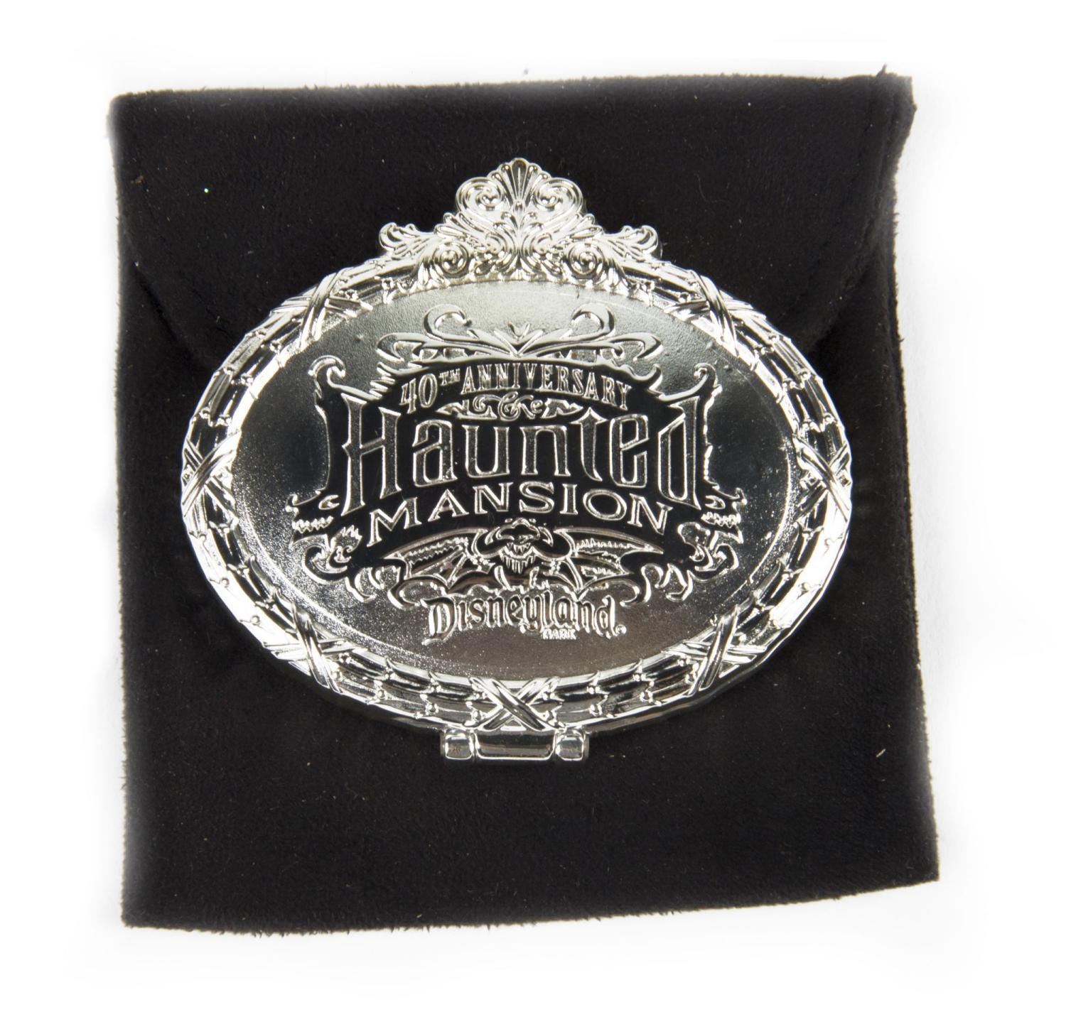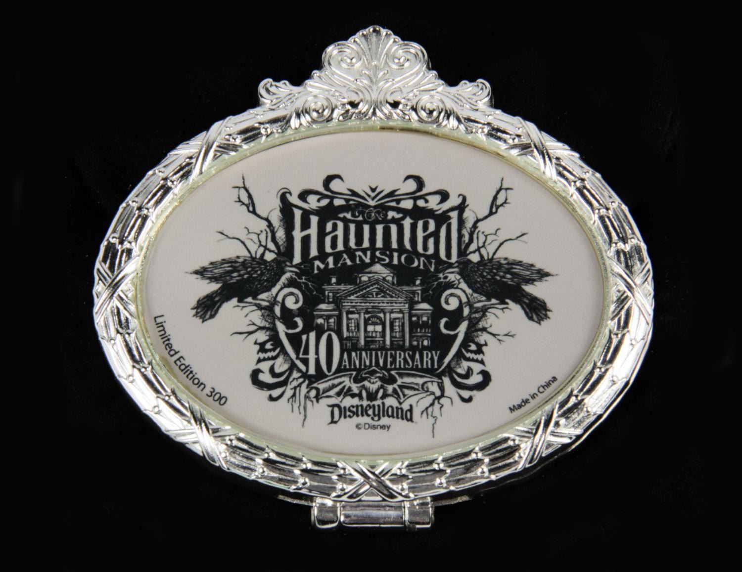 (Disneyland, 2004) A metal purse mirror for the 40th anniversary of Disneyland’s Haunted Mansion, released in a limited edition of only 300. The mirror clasps magnetically and comes in its original carrying pouch and outer box. Measuring 2.5" x 2.75", the mirror is in very good condition with light wear.