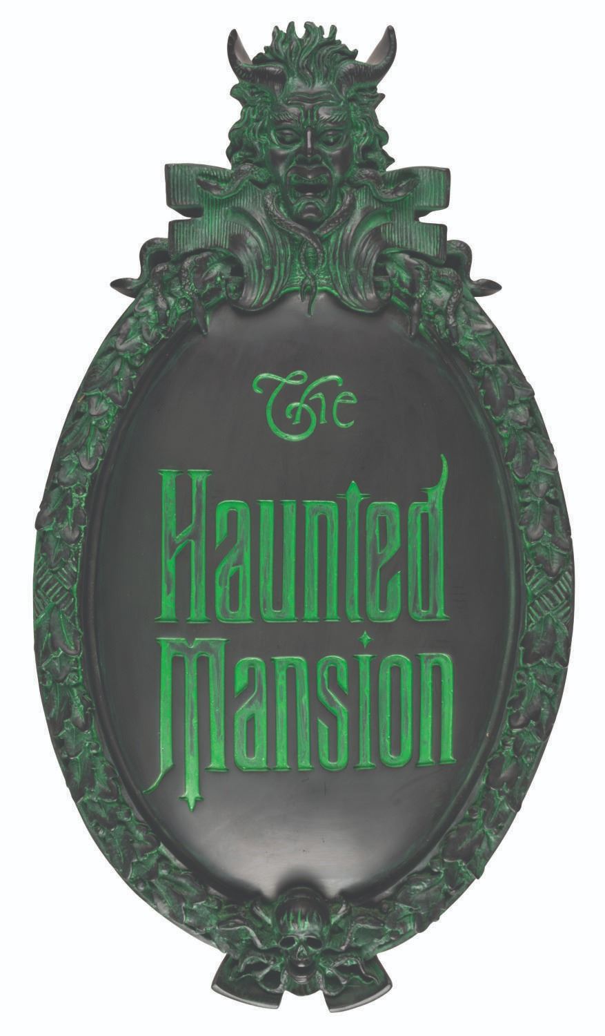 (Disneyland, 2014) A souvenir replica gate plaque created for the 45th anniversary of The Haunted Mansion. Measuring 22.5" x 12.75", the large resin replica is in very good condition with light wear.