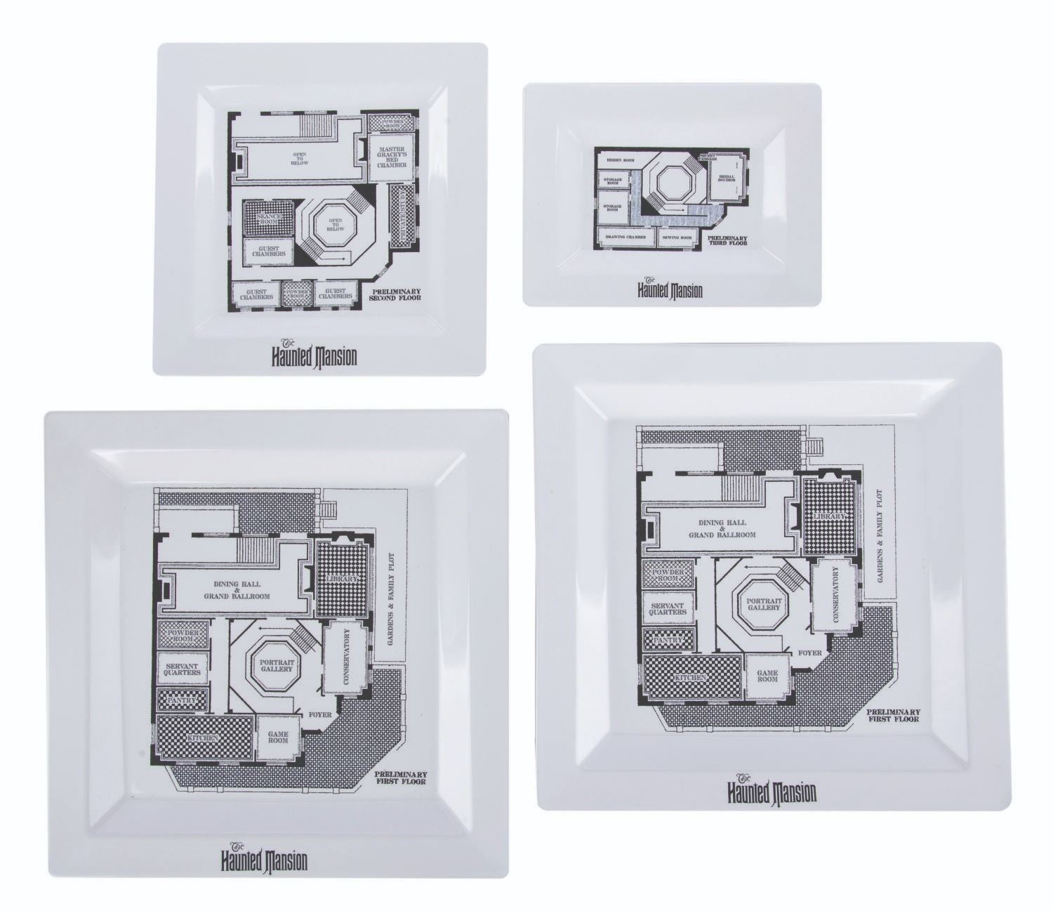 (Disney Parks, 2014) A Haunted Mansion "From The Estate of Master Gracey" Architectural Plate Set featuring blueprints of the Preliminary First, Second, and Third Floor Plans of the popular attraction. Each plate is in fine condition with original Disney Parks labels on the reverse.