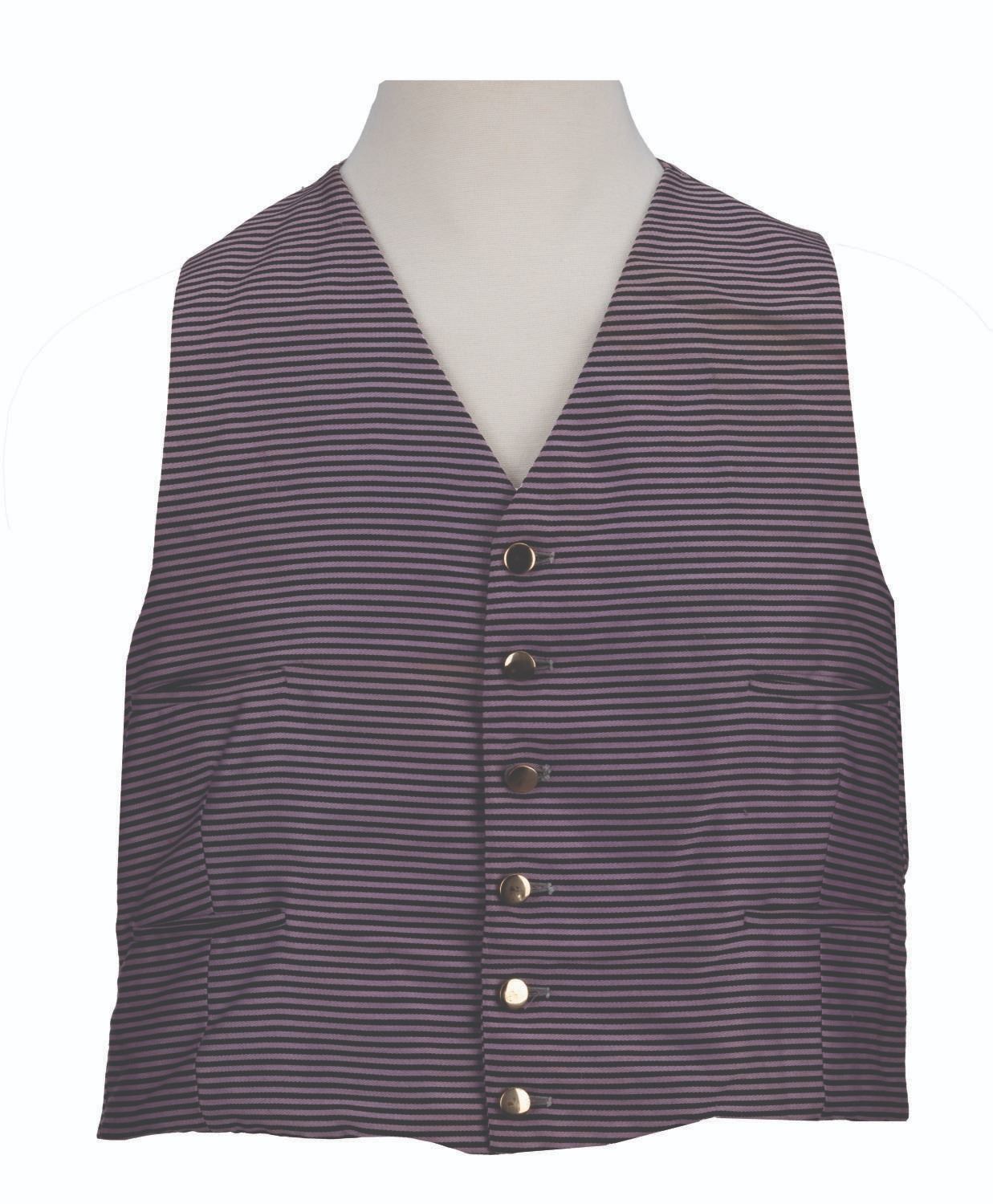(Disneyland, 1990s-2000s) A costume vest worn by Cast Members working at The Haunted Mansion in New Orleans Square. Unlabeled but likely a size large, the vest displays in very good condition with typical wear from Park use, including light stains, heavy oxidation to the buttons, and a large tear to the interior lining, which does not affect the outward appearance.