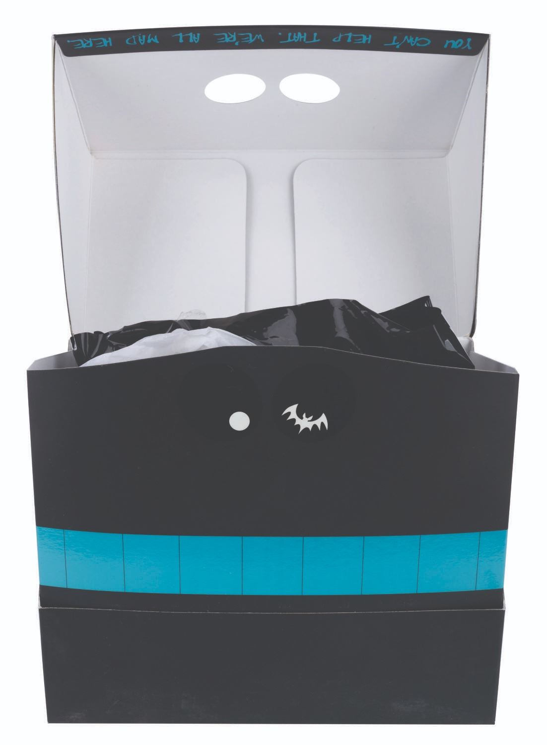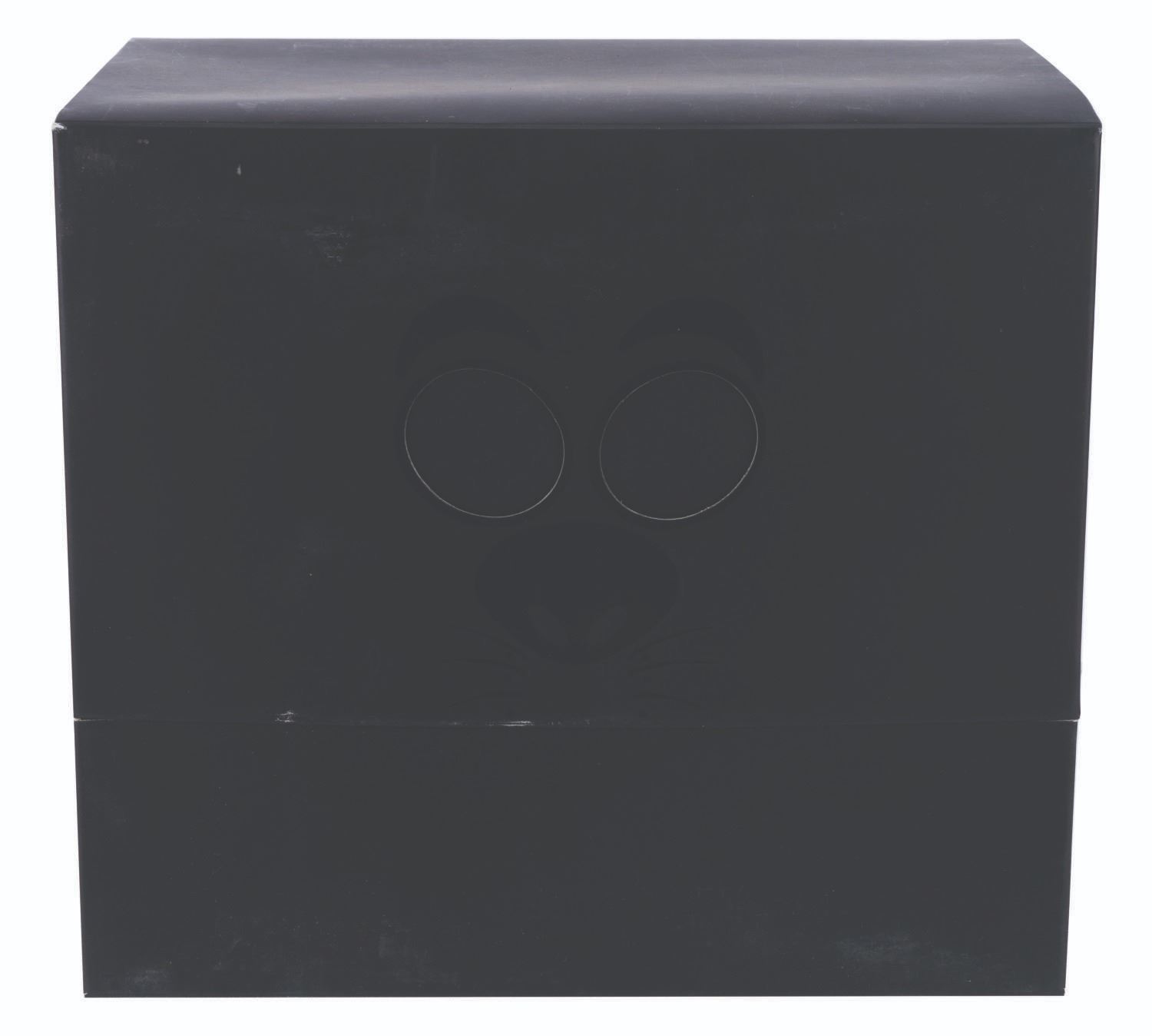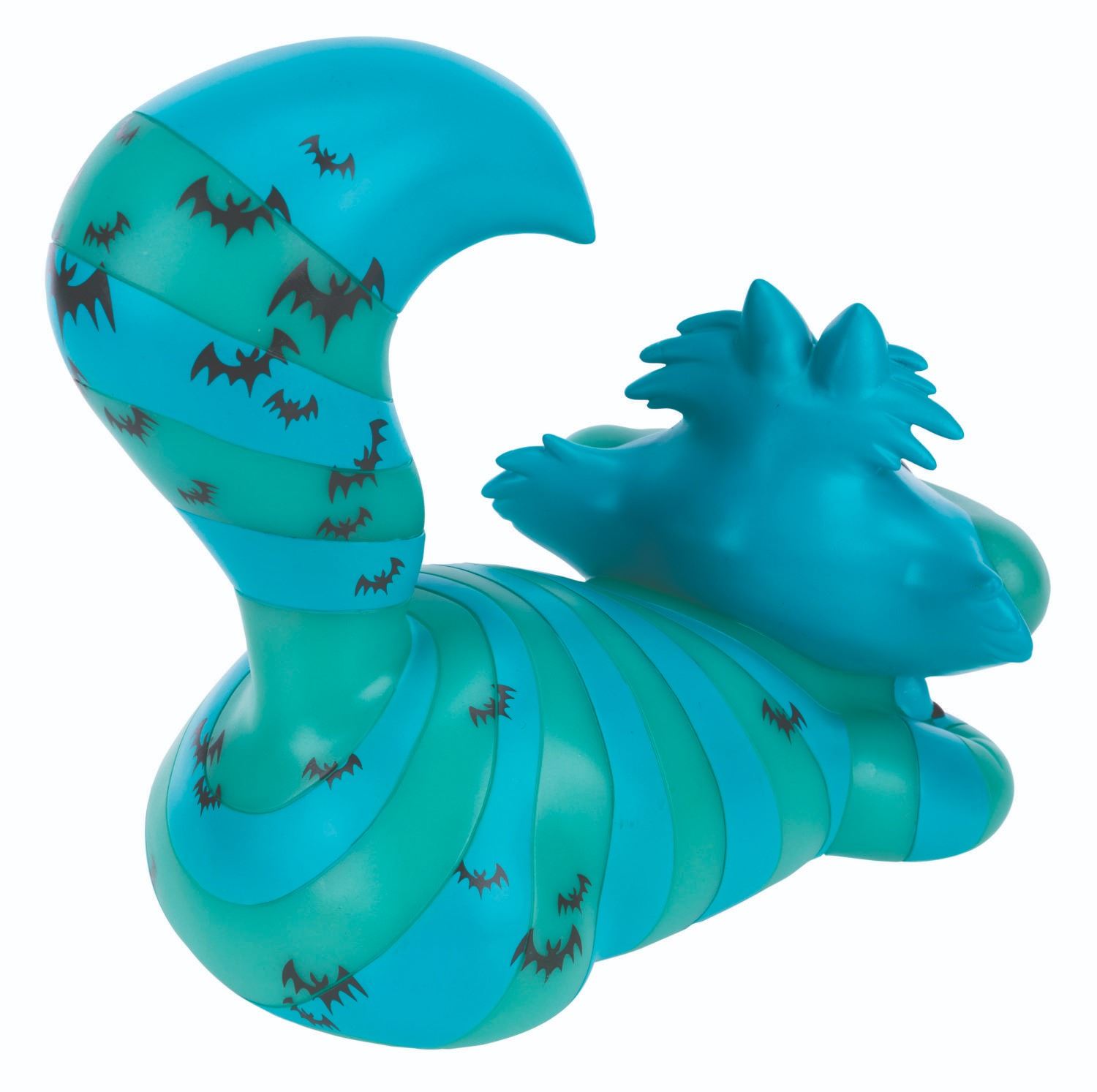 (Disney, 2006) A Cheshire Cat vinyl figure sculpted by Monster5 and manufactured by Span of Sunset. This variation on the "Alice in Wonderland" cat, released in a limited edition of 500, was inspired by The Haunted Mansion. The original concealed Cheshire Cat face cardboard box packaging, designed by Nathan Cabrera, is included. Measuring 7.25" x 4" x 7.5", the vinyl figure is in very good condition with light wear. The 10" x 6" x 9" box displays in good condition with light wear and scratches.