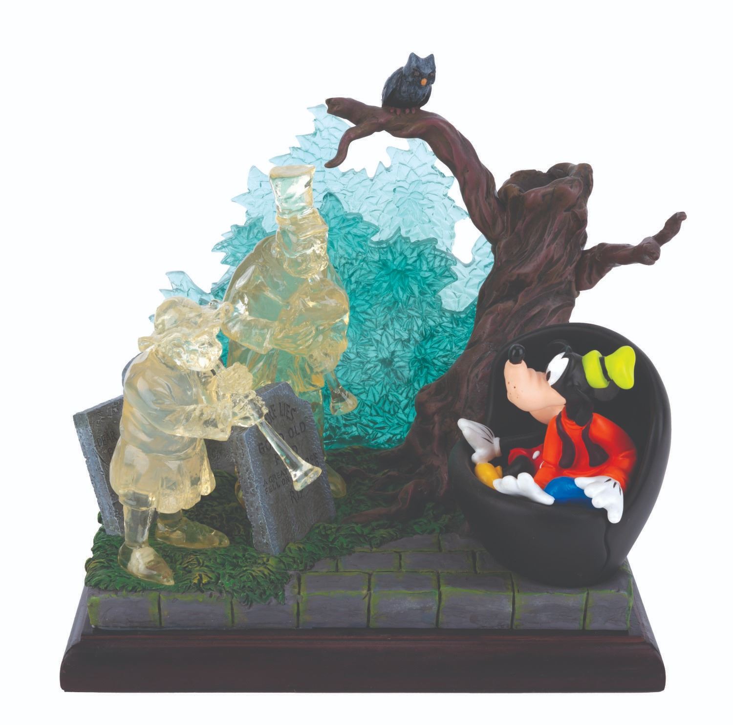 (Walt Disney World, 2004) A "Clearly Magical" figural display by Randy Noble, released in an edition of 500 at the Happy Haunts Ball. With 3 AAA batteries (not included), the ghosts light up green, and the owl's eyes glow red. The piece is in very good working condition with minor yellowing to the ghost figures from age.