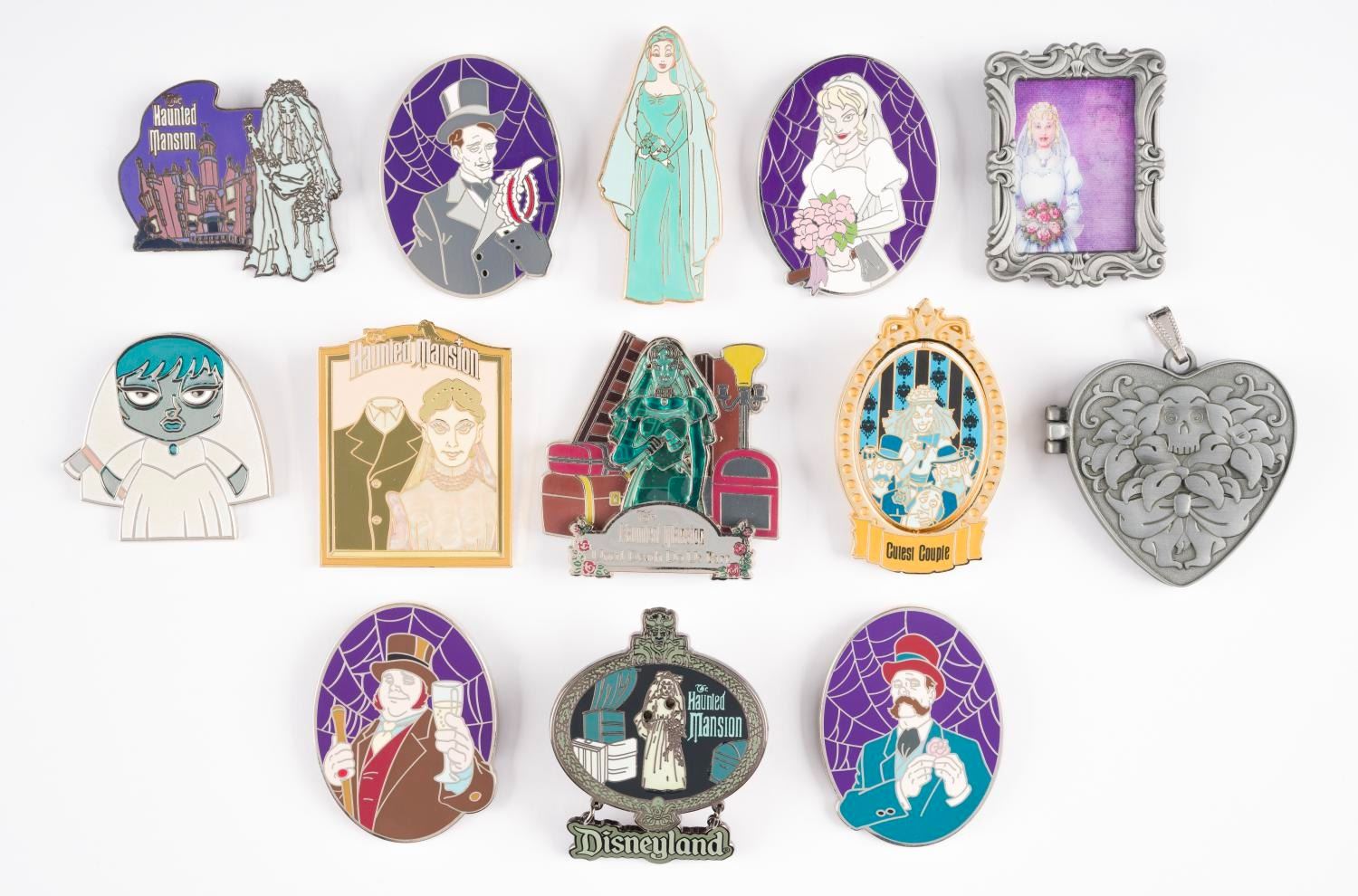 (Disney Parks, 2002-13) A collection of pins themed after The Bride Constance Hatchaway and her husbands. Among the lot are (1) Imagineering Exclusive and a few commemorating the “Friday The 13th : The Eve of Valentine’s Day” event. The pins are in very good to fine condition with wear to the elements of some.