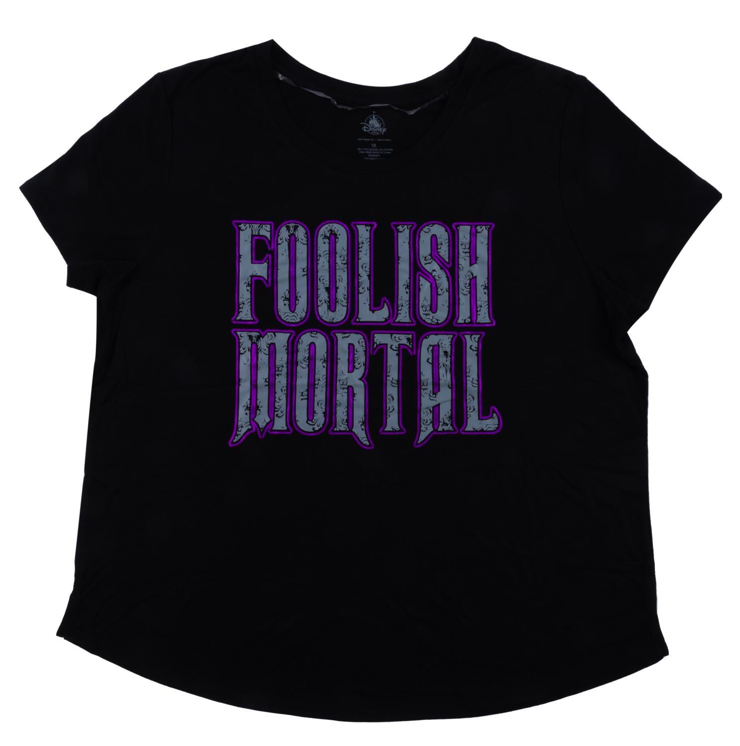 (Disney Parks) A Haunted Mansion "Foolish Mortal" shirt. Measuring a Women's 1X, the shirt is in fine condition with its original tags.